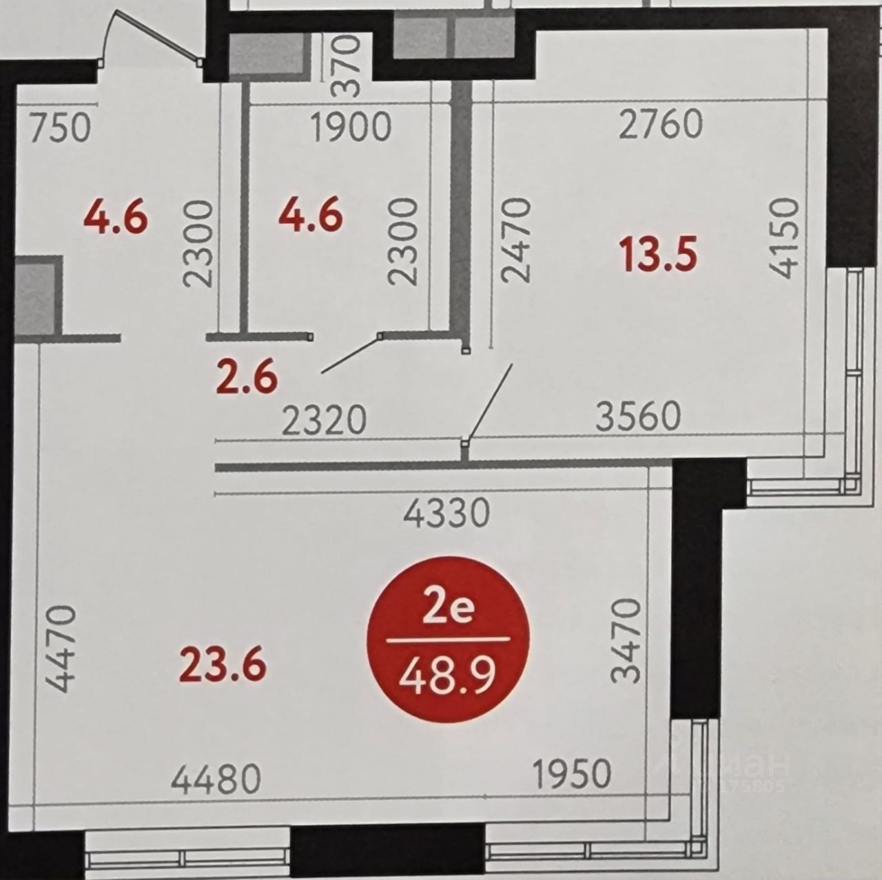 Общая площадь 47.2 м2
