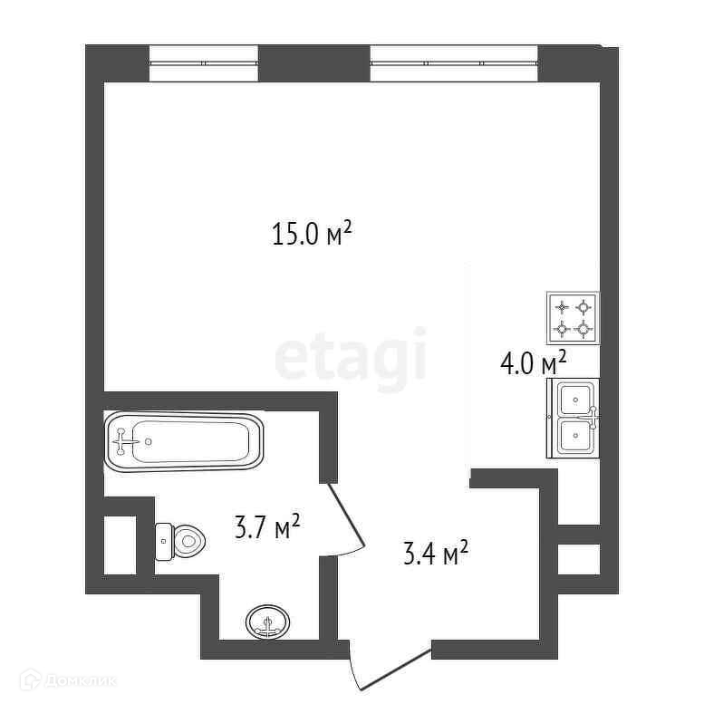 Общая площадь 26.3 м2