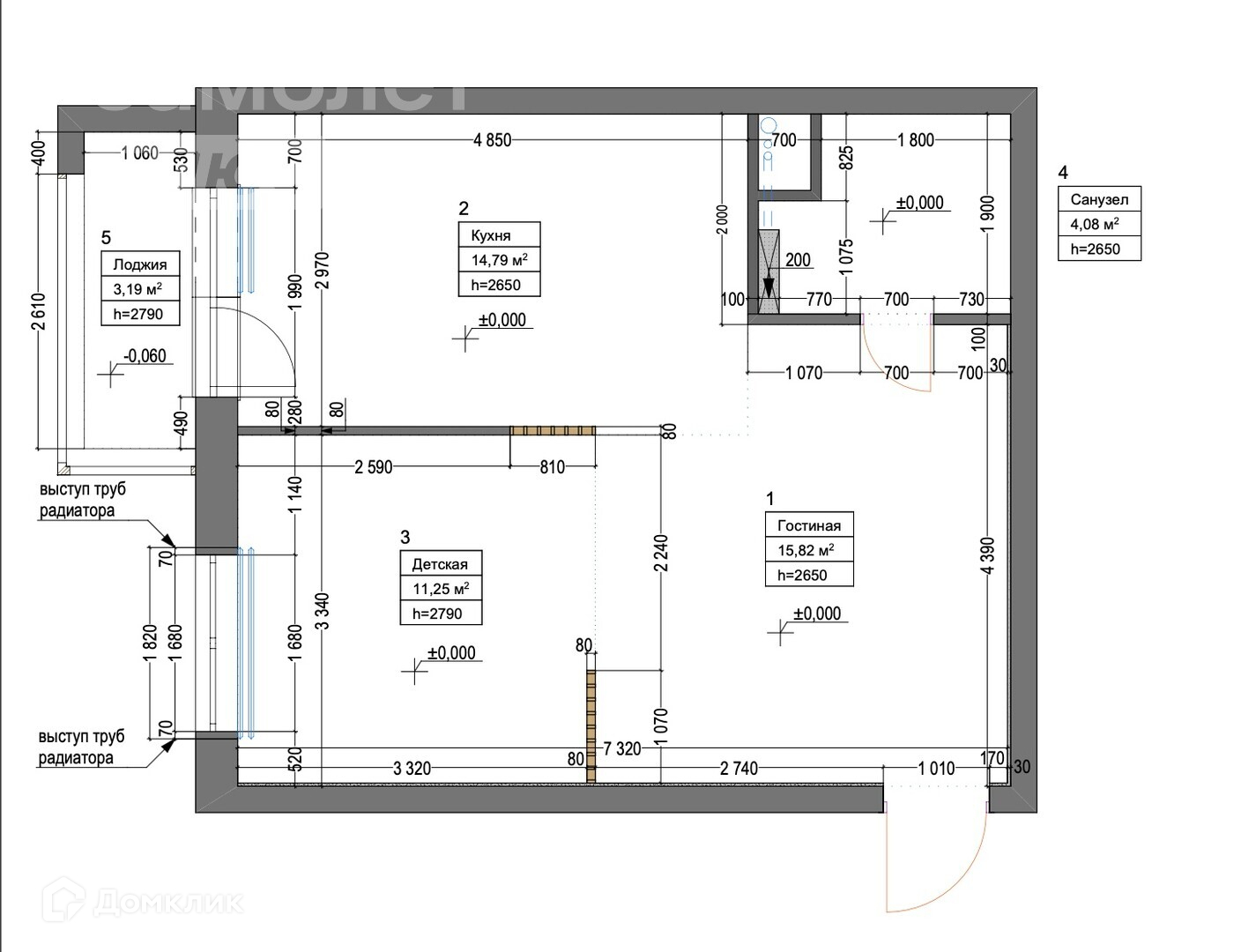 Высота потолков 2.9 м