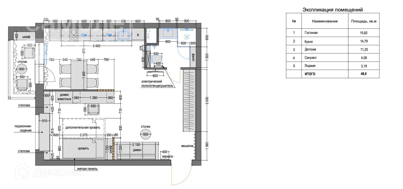 Общая площадь 45.2 м2