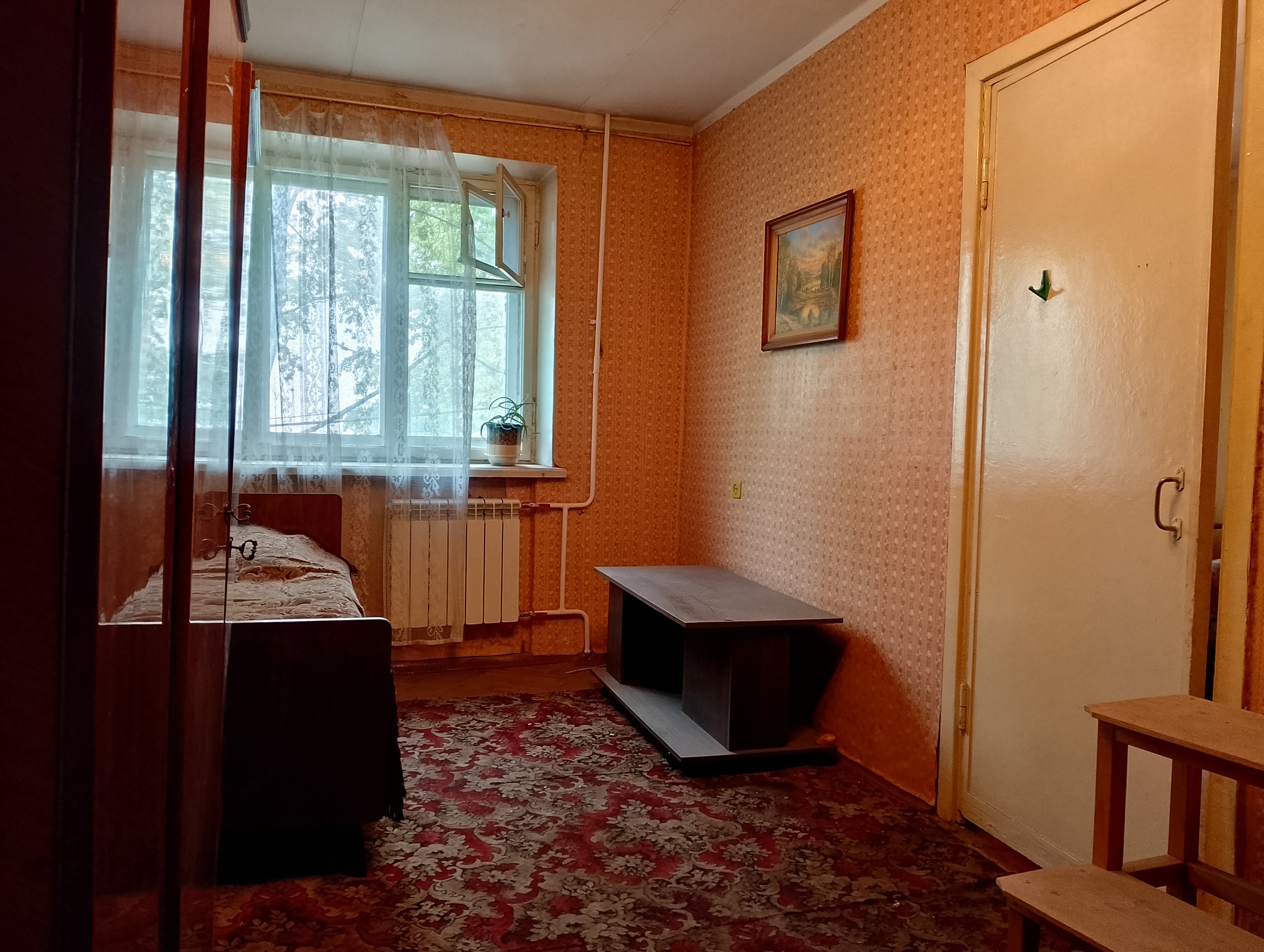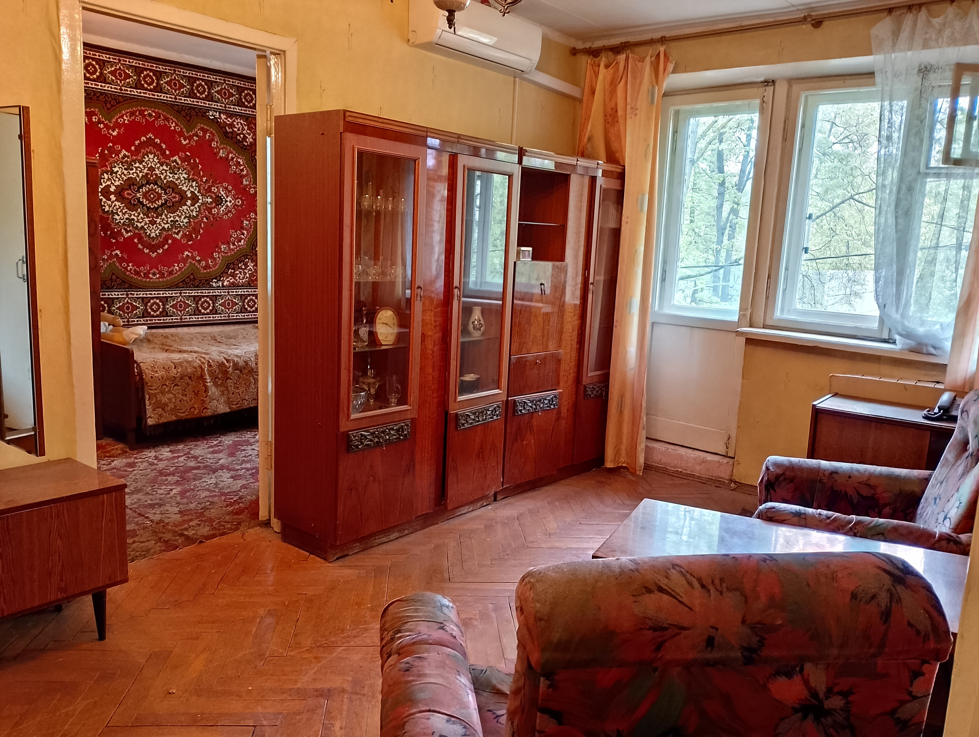 Квартира расположена на 3 этаже 5-ти этажного кирпичного дома 1968 г. постройки. Имеет общую площадь 42,9 к.м, жилая 18,4 кв.м., кухня 6 кв.м., с/у раздельный. Комнаты смежные. Выход на балкон из гостиной комнаты. В квартире установлена современная сплит-система, которая остаётся новому собственнику. Состояние квартиры удовлетворительное, частично требуются ремонтные работы.