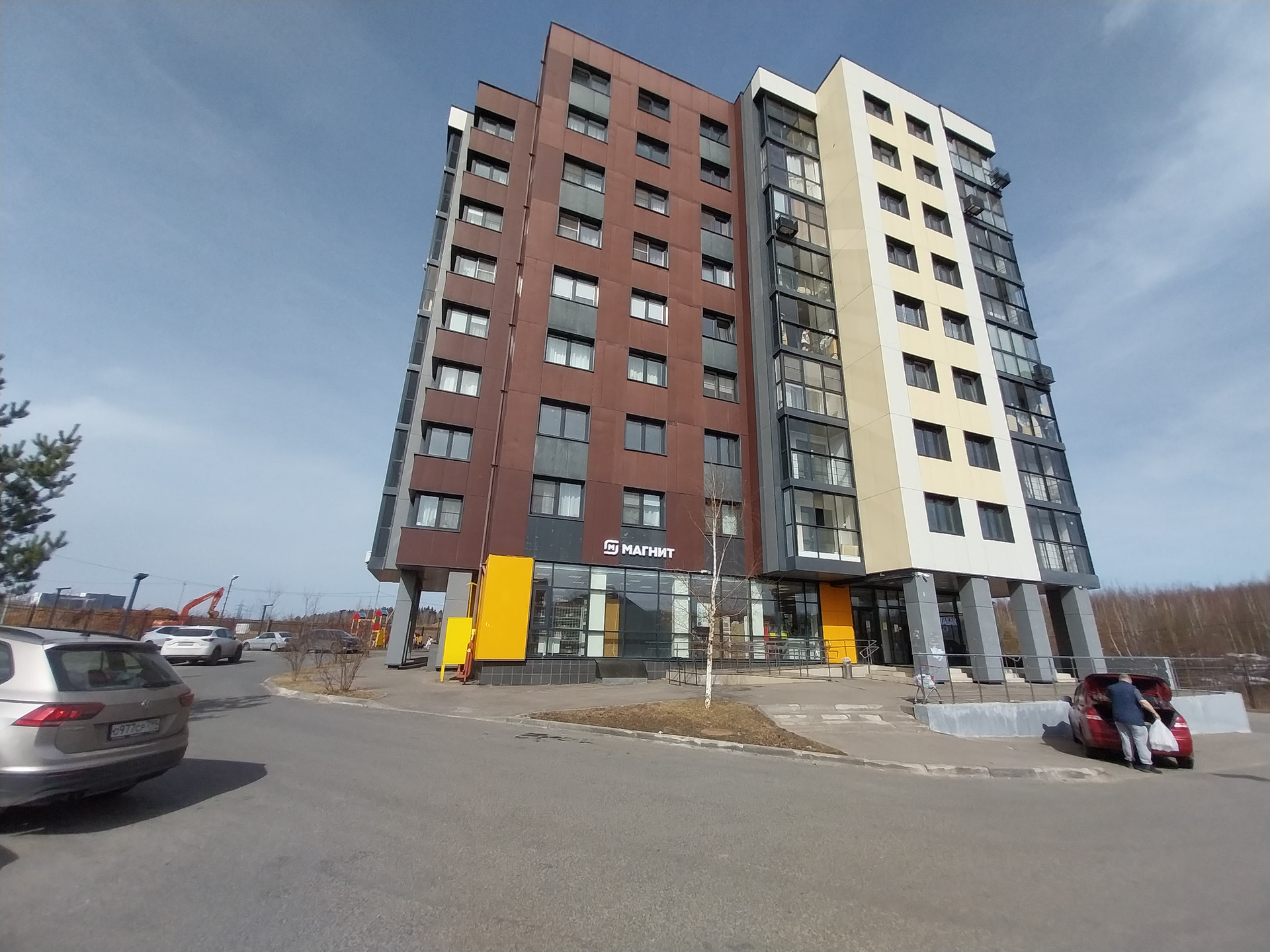 В соседнем доме есть большой новый супермаркет Магнит.