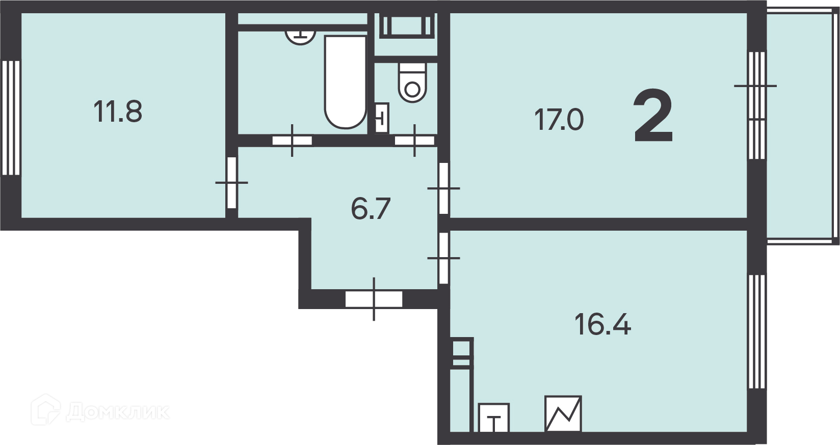 Количество комнат 2