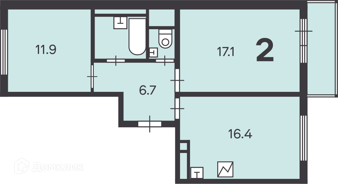 Общая площадь 57.3 м2