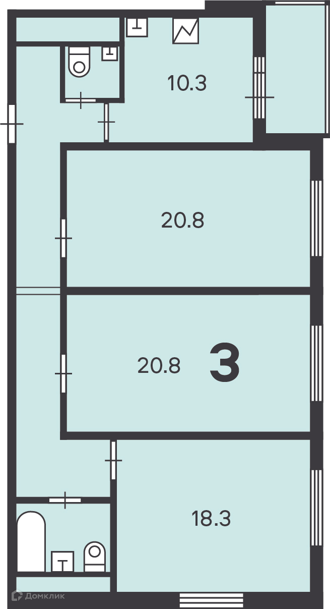 Количество комнат 3