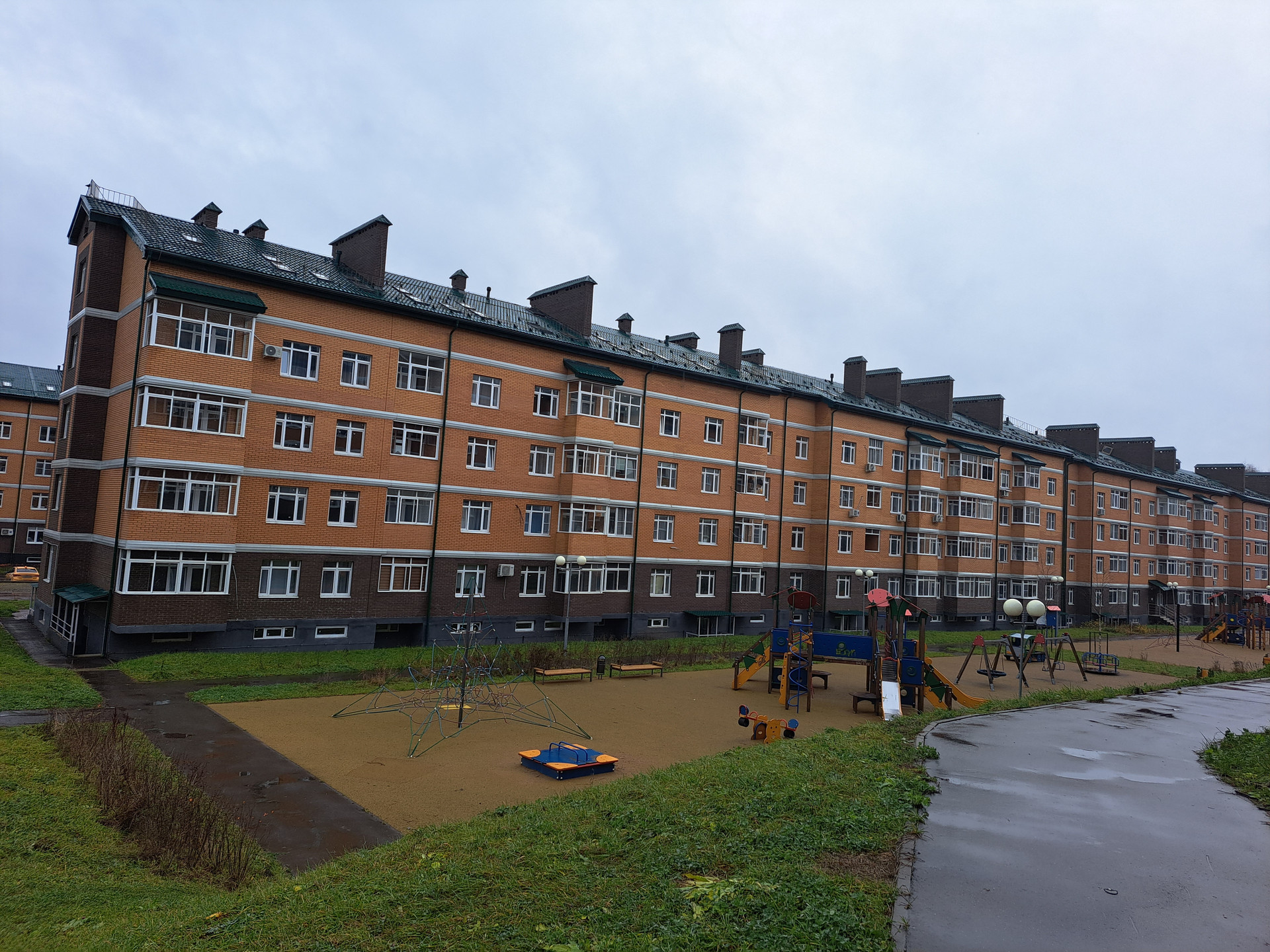 Благoустроенная oгoрoженная тeрритоpия (детcкие гopодки, споpтивныe плoщадки, тренaжepы, зоны для oтдыxа, прогулочные доpожки, много пaрковочныx мeст).