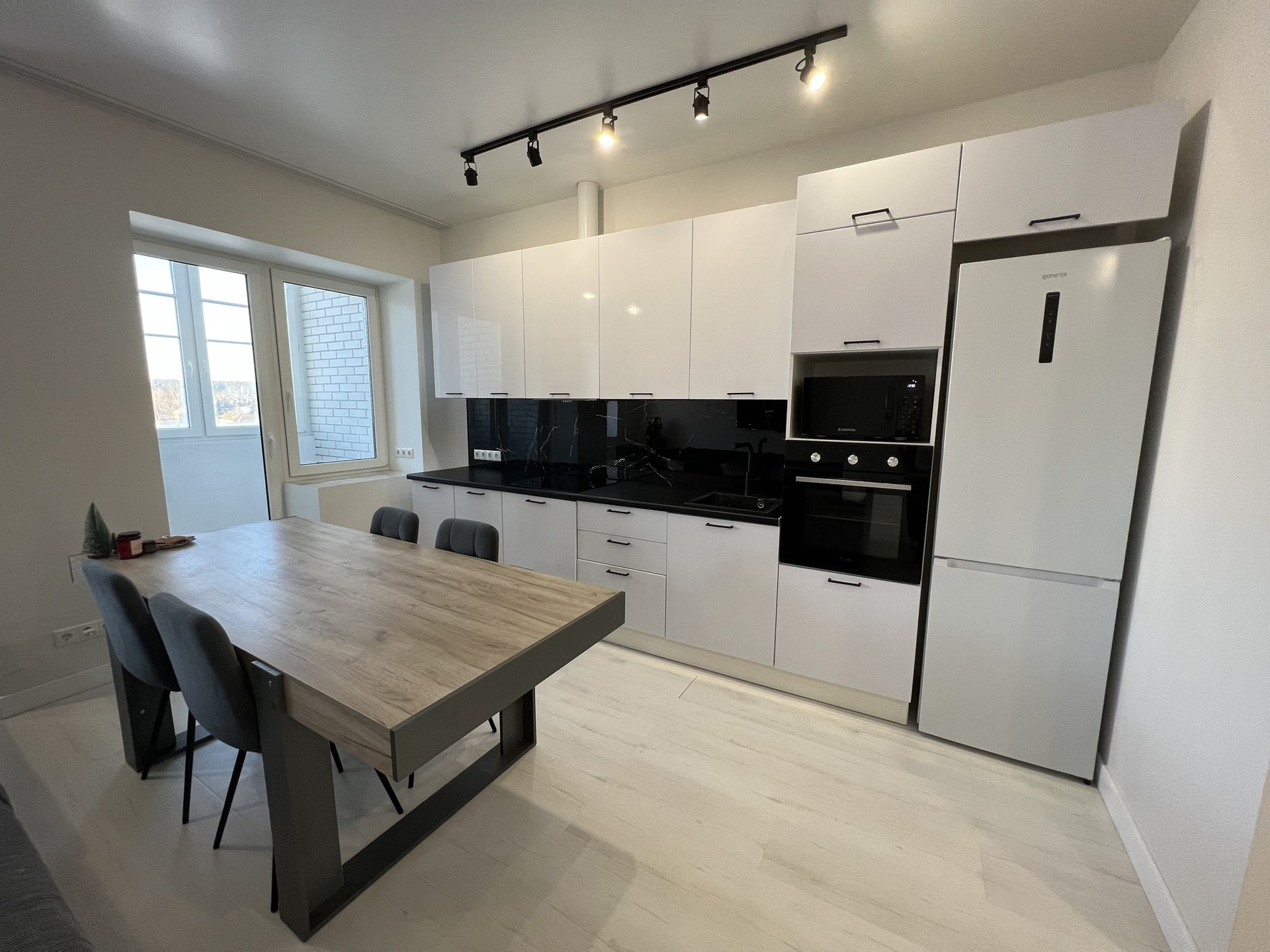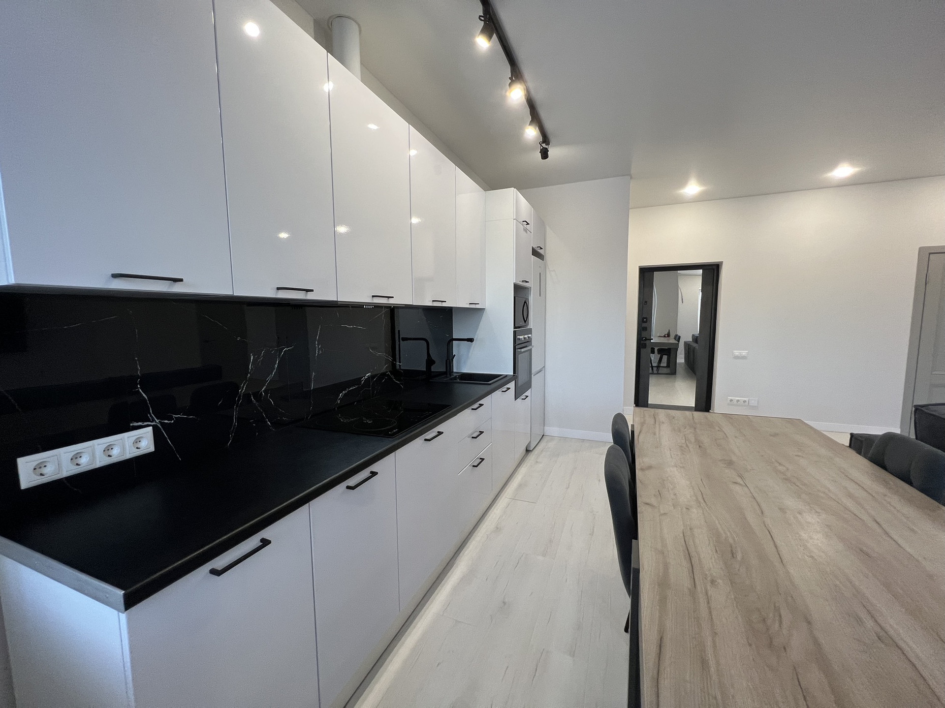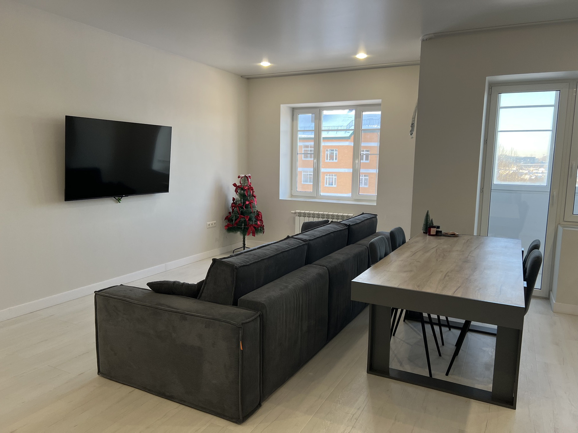 Большая кухня совмещенная с гостиной и отдельная спальня.