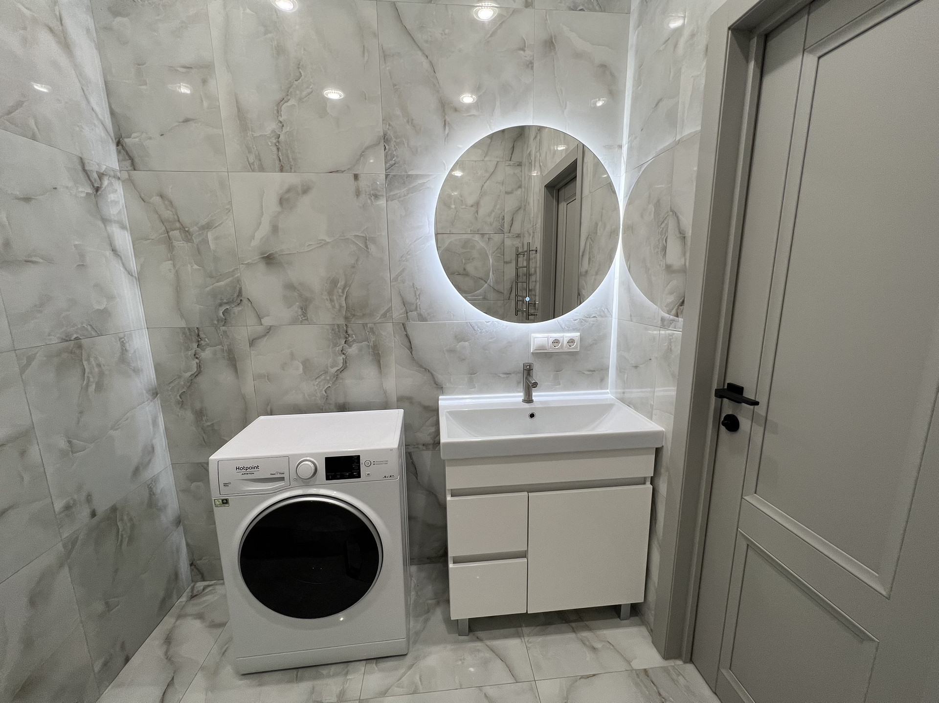 Входная дверь с шумоизоляцией,подоконники все из керамогранита.