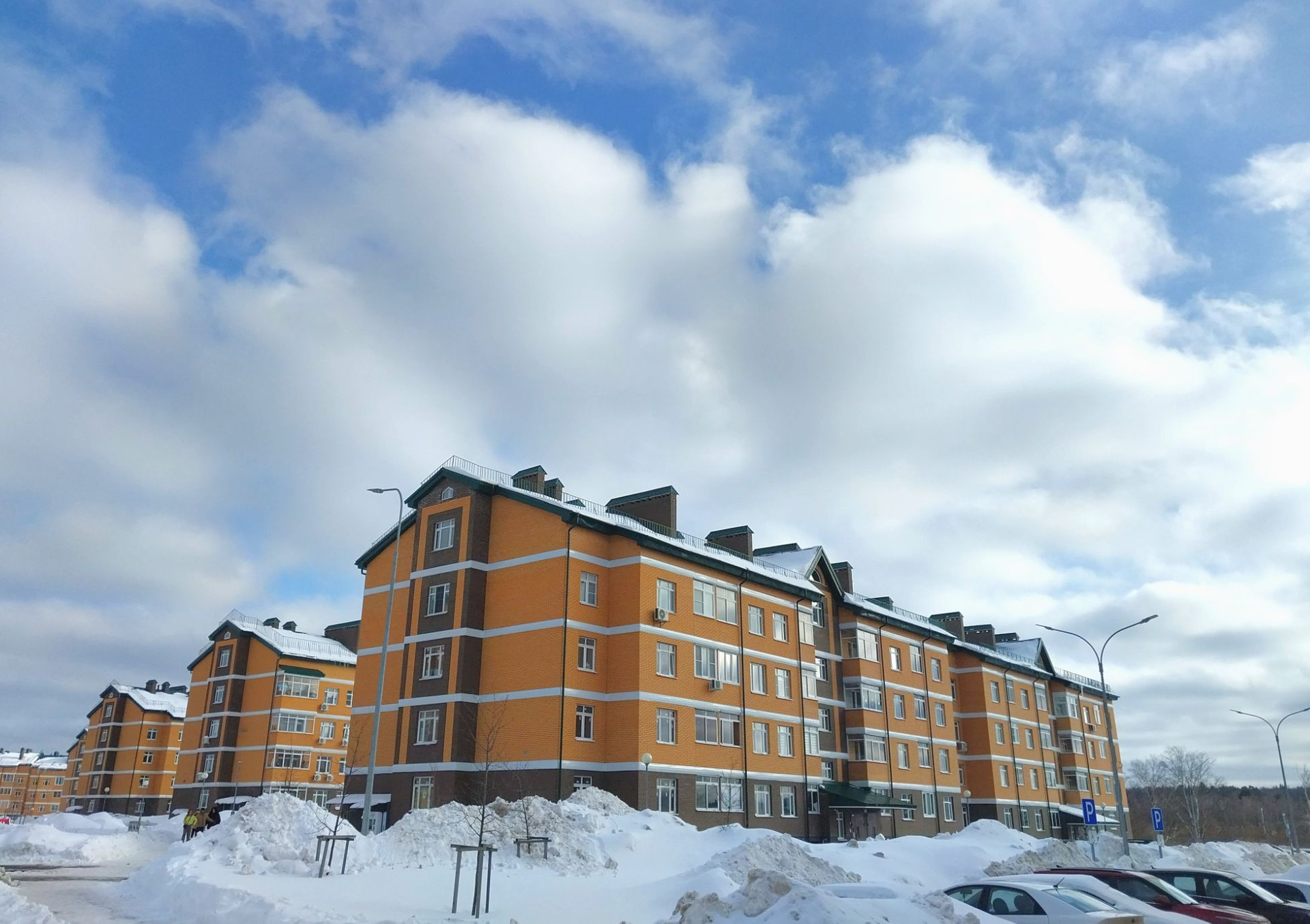 Внутри ЖК ландшафтнoе благoуcтройcтво. Возле дома специальные места для парковки