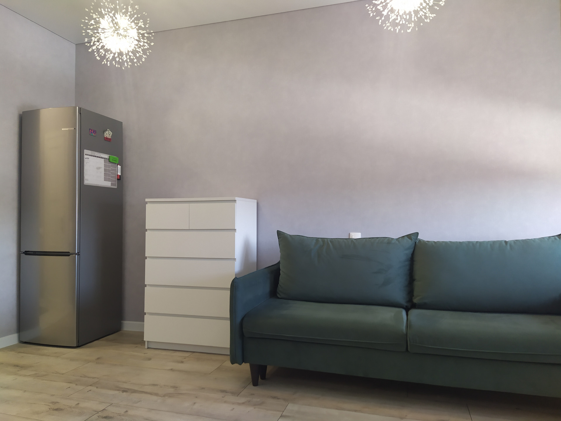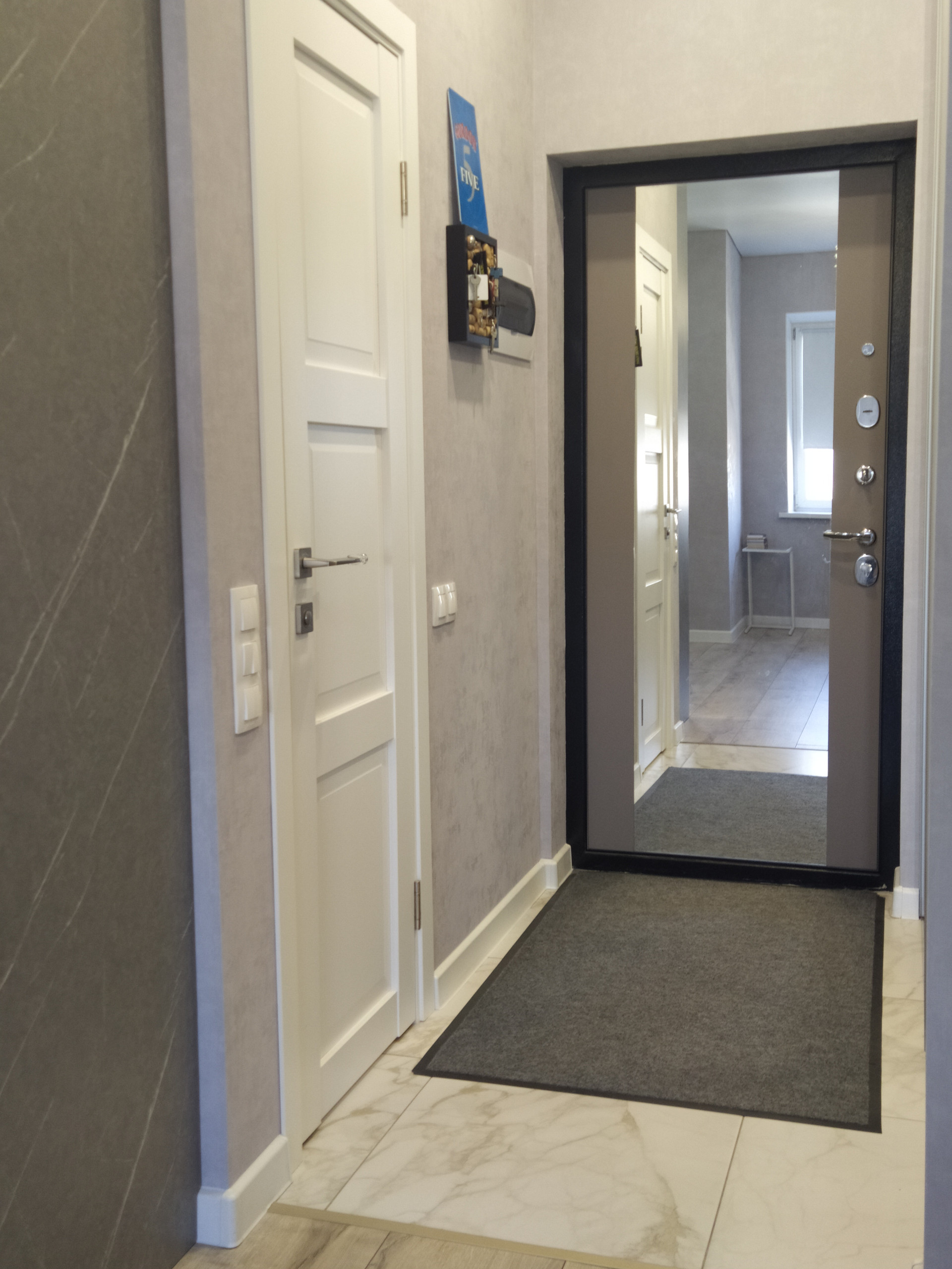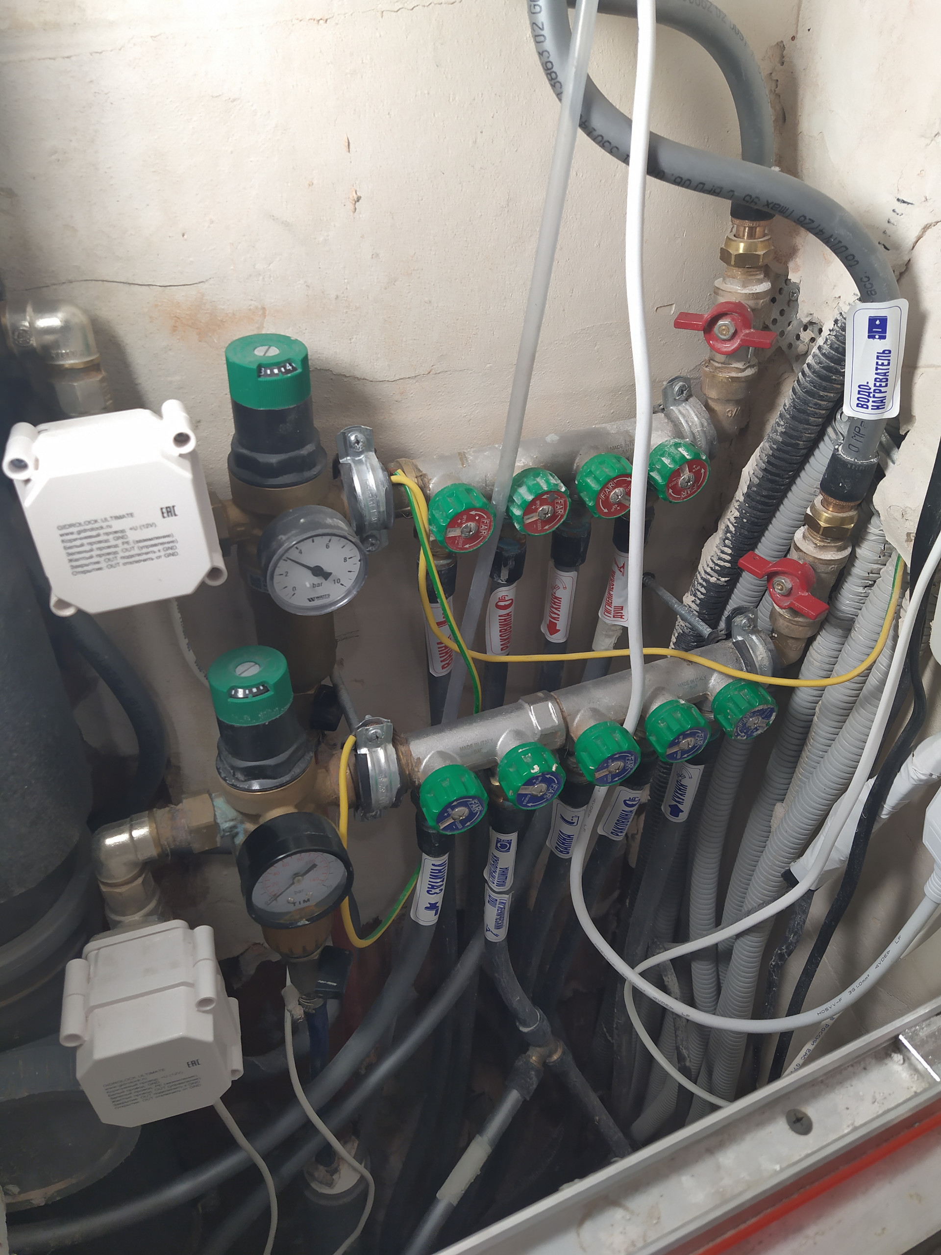 Пол - ламинат Германия. Разводка сантехники Rehau, защита от протечек, нагревательный бак для воды. Сместили Grohe в сан узле. Разводка электрики по зонам, с проходными выключателями.