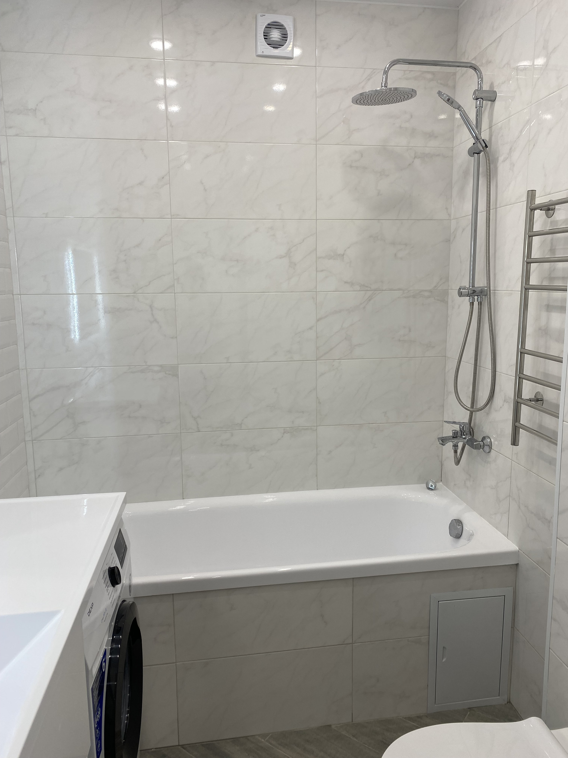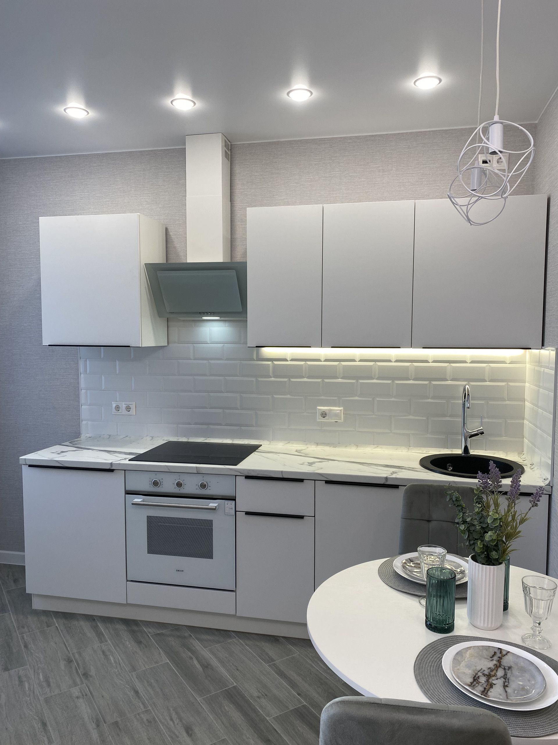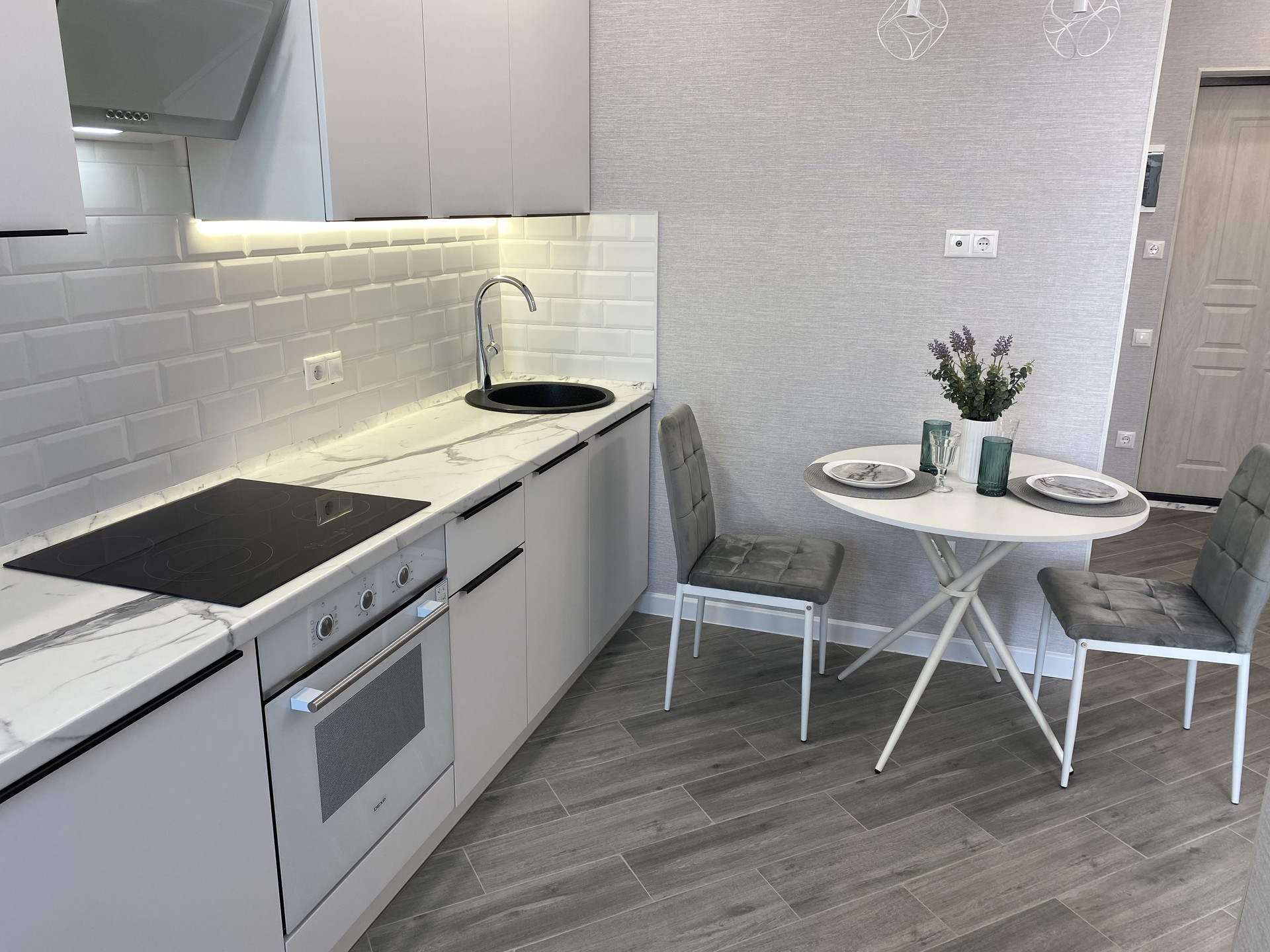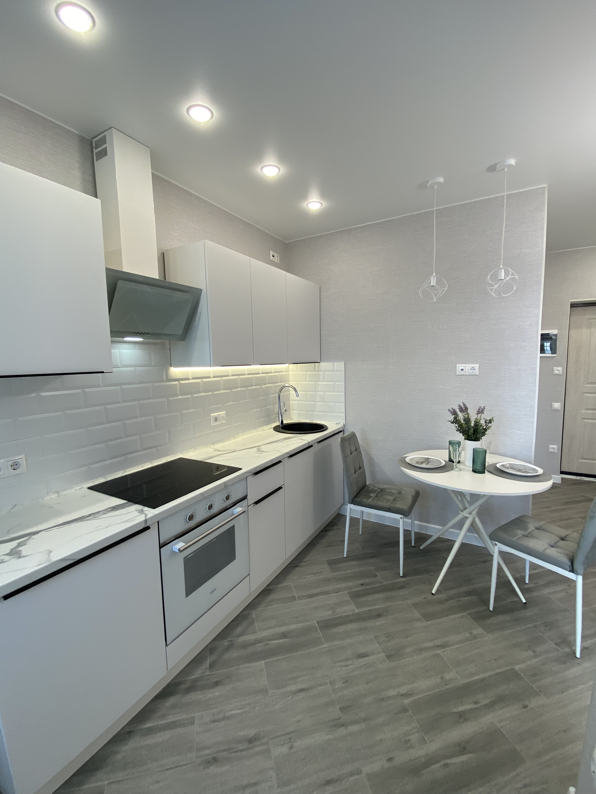 В квартире натяжные потолки, керамогранит, LED освещение, система отопления Rehau, новые радиаторы, кухонный гарнитур с встроенной техникой: посудомоечная машина, варочная панель, духовой шкаф, вытяжка. Также стиральная машина, диван, кровать, матрас комфорт с независимыми пружинами, два шкафа-купе, инсталляция. Вся бытовая техника новая, на гарантии.