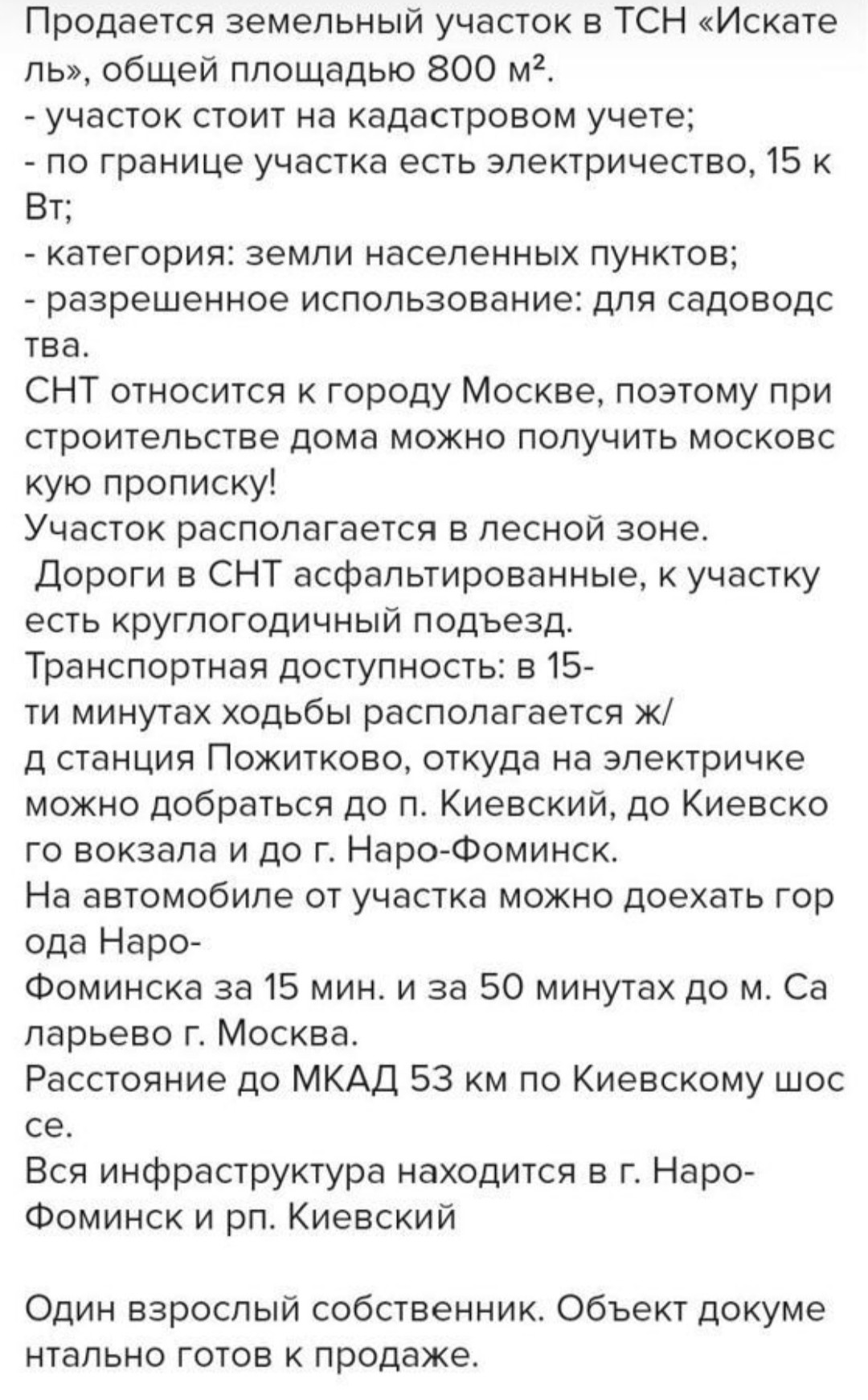 Участок под ИЖС, 8 сот. на продажу в поселении Киевский