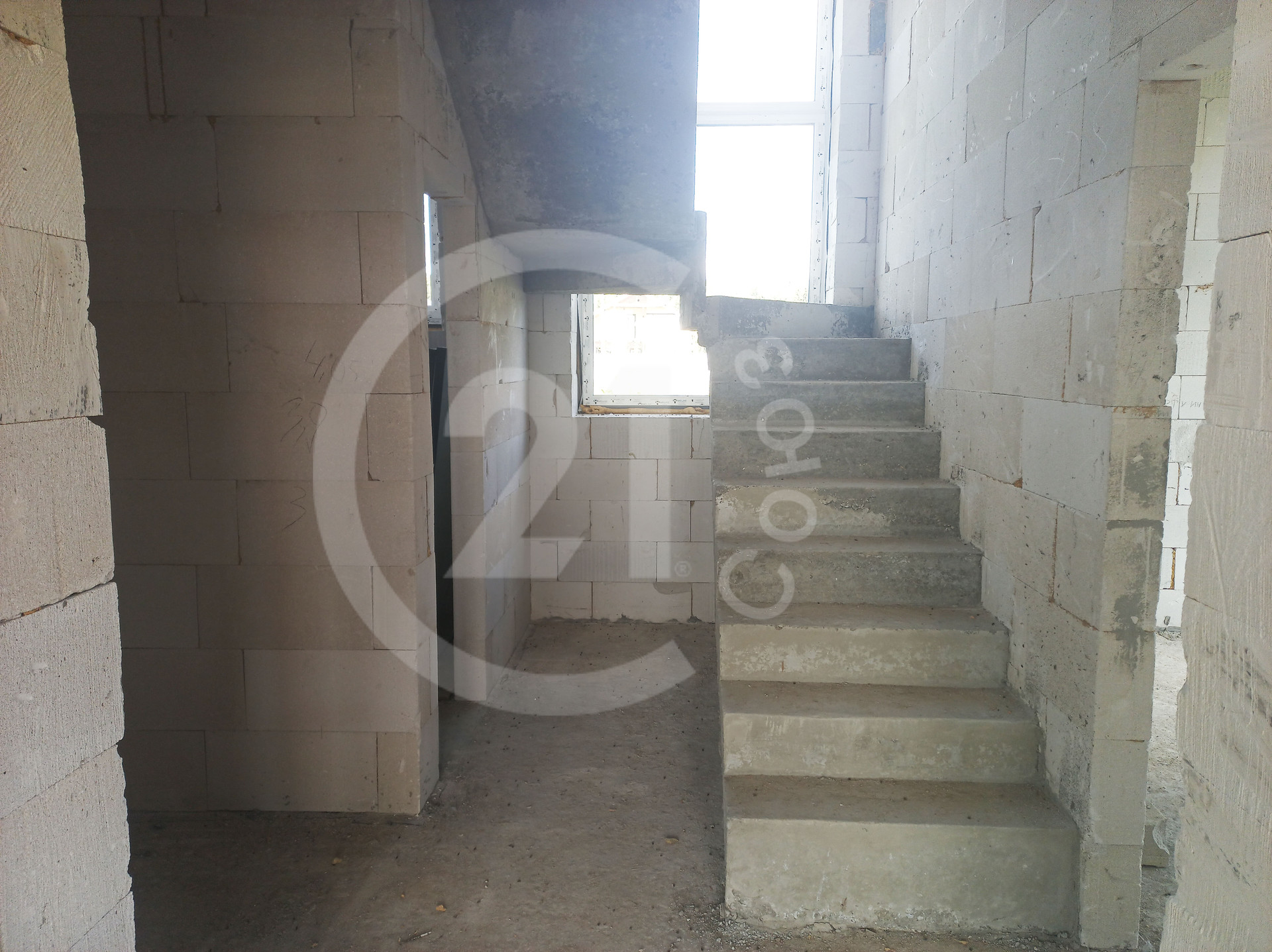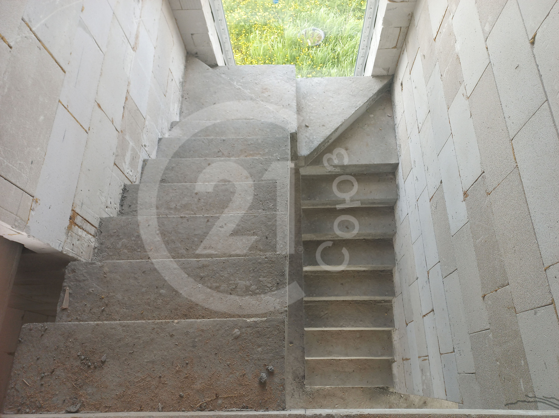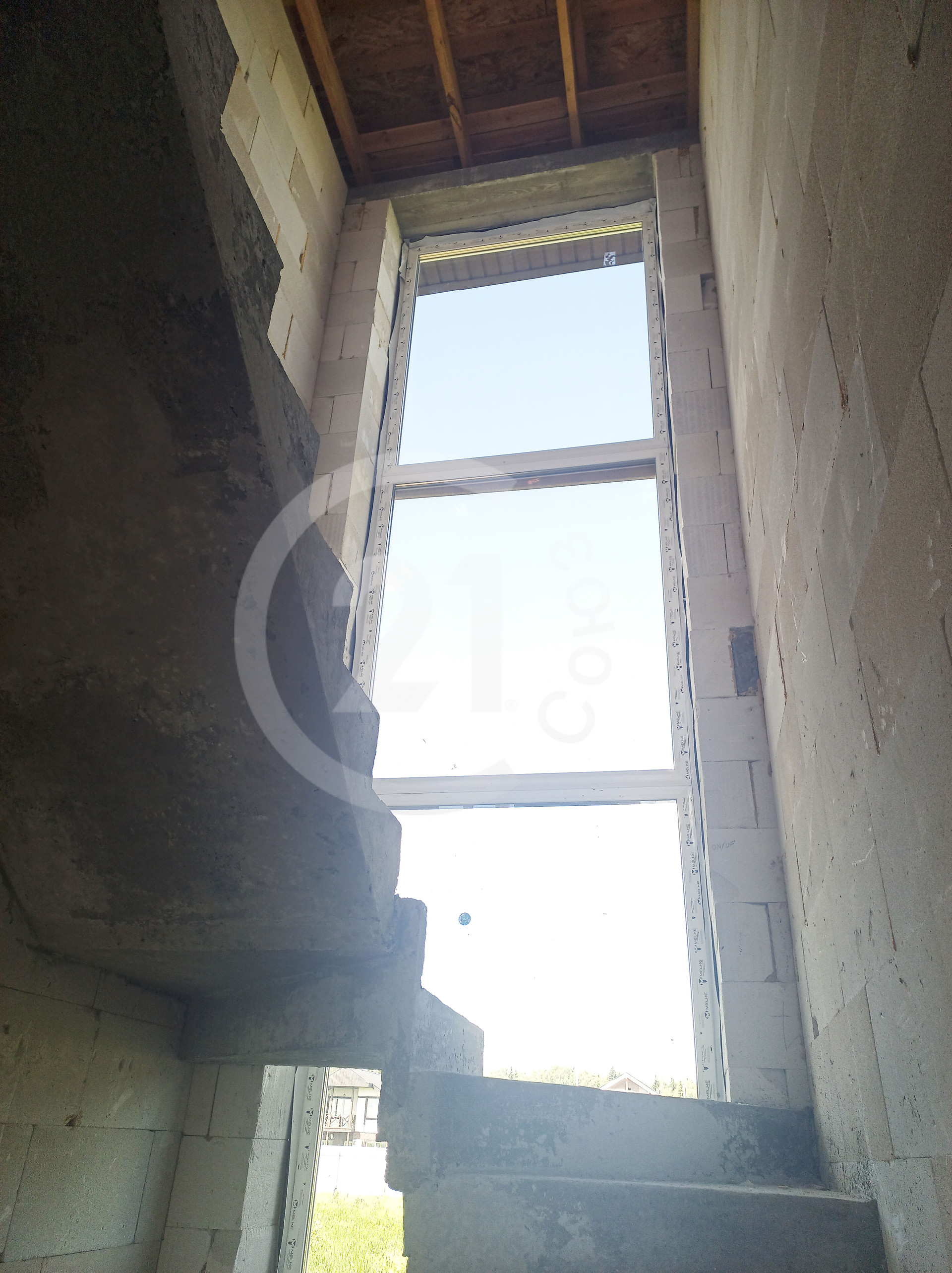 Вдоль лестницы окно высотой 6 метров.