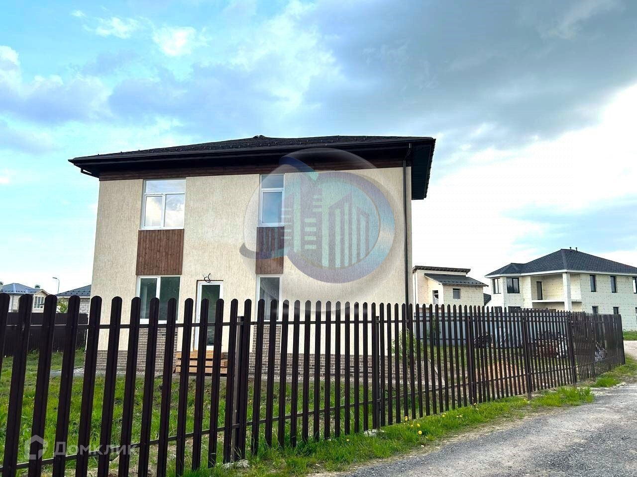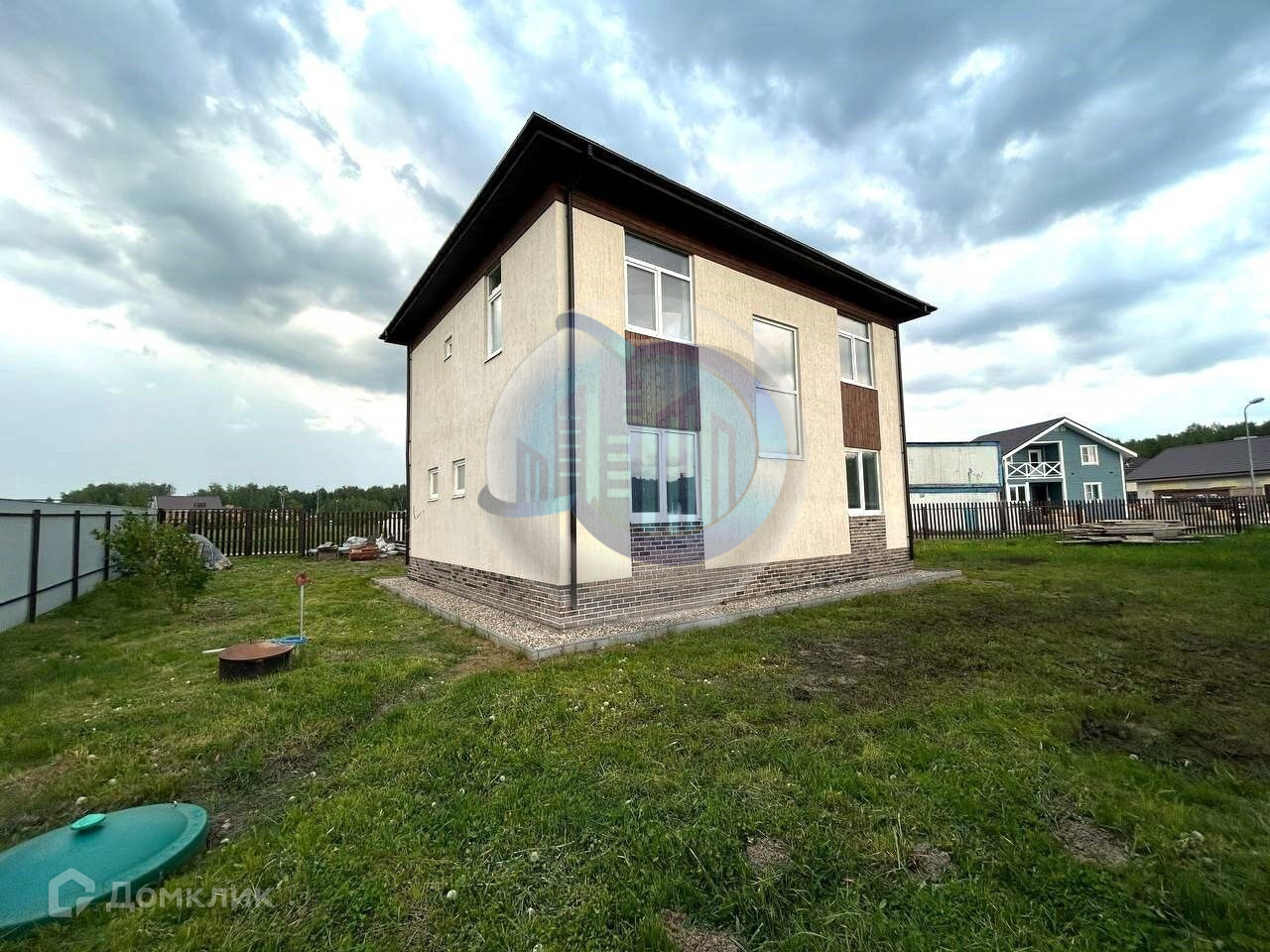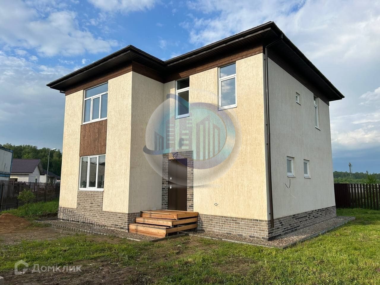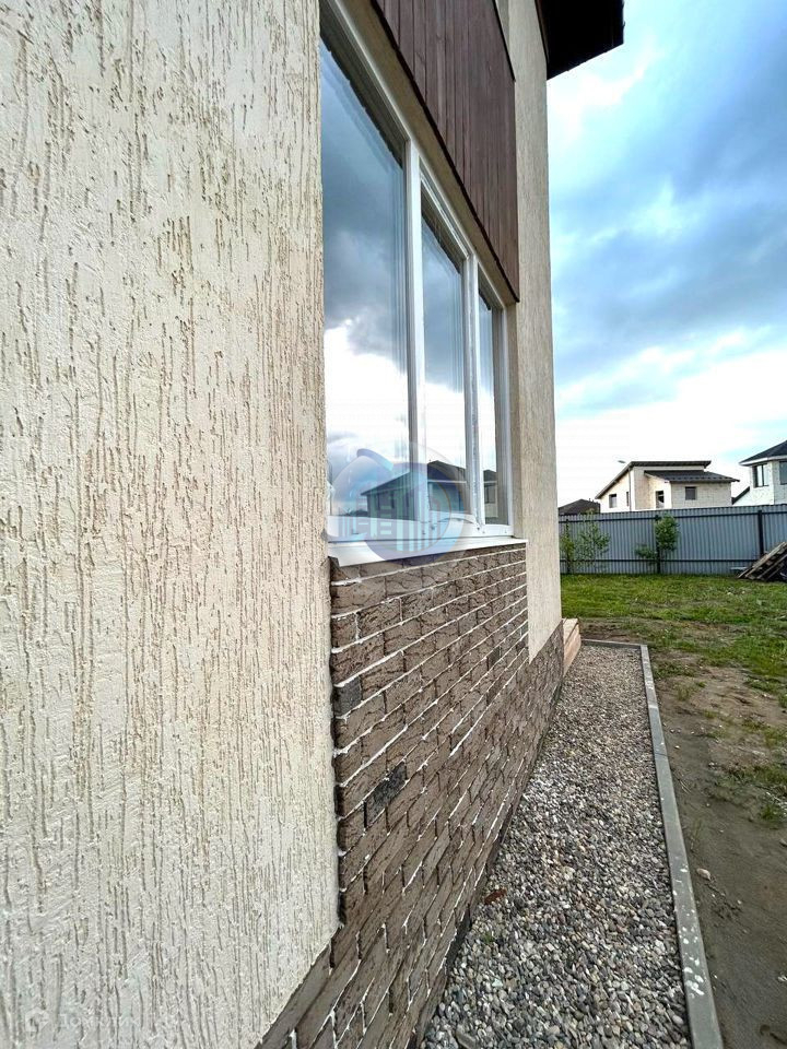 Фундамент свайно-ростверковый. Стены из газобетонных блоков (Бонолит) с тонким клеевым швом и наружным утеплением, фасад комбинированный: штукатурка "короед", клинкерная плитка, декоративные вставки из дерева. Межэтажные перекрытия монолитные. Лестница монолитная. Перегородки выполнены из блоков. Чердачные перекрытия деревянные с перекрёстным утеплением минватой. Крыша вальмовая из двухслойной мягкой черепицы. Дом и участок оформлены в собственность.