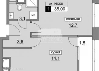 Продается однокомнатная квартира, 35 м2, Родниковая улица, 30к3