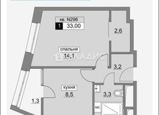 1-комнатная квартира на продажу, 33 м2, Родниковая улица, 30к3