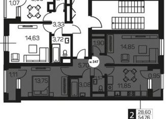 Продается 2-ком. квартира, 54.6 м2, Родниковая улица, 30к3