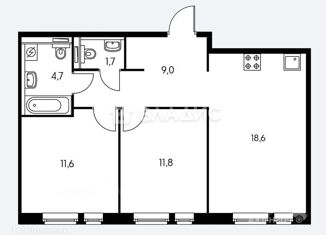 Продам 2-ком. квартиру, 61.63 м2, Родниковая улица, 9Ак5