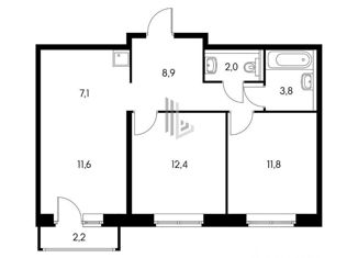 2-ком. квартира на продажу, 60.2 м2, Саларьевская улица, 10к2
