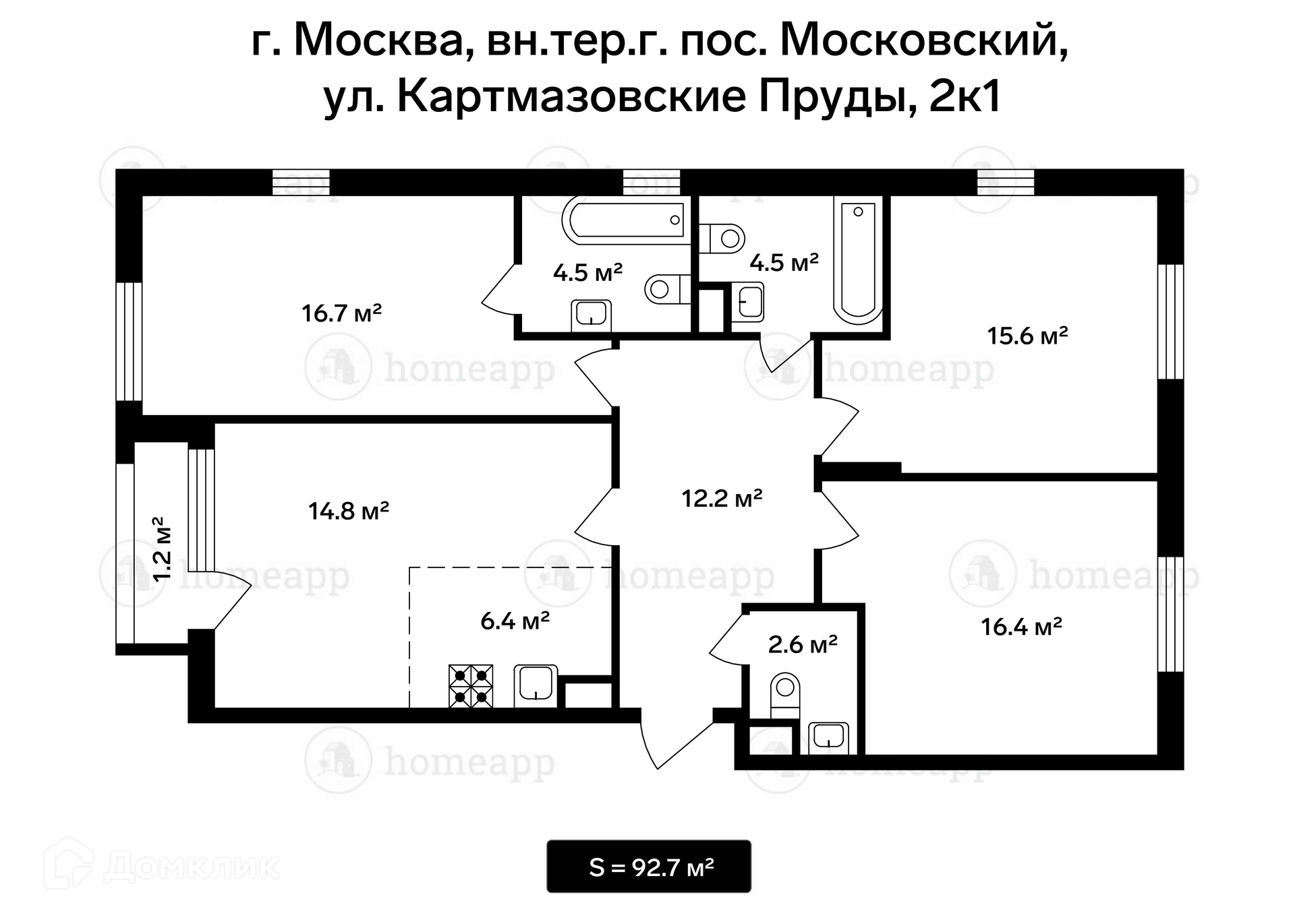 Общая площадь 92.7 м2