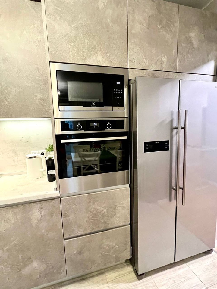 Из плюсов: Самый первый корпус от метро.  Полы с подогревом в коридоре только. Техника: посудомойка BOSCH, духовой шкаф пиролитический Electrolux, микроволновка Electrolux, холодильник SAMSUNG ,  Кухня «Стильные кухни» с доводчиками Blum, на гарантии.
