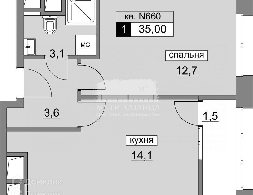 Жилая площадь 12.7 м2