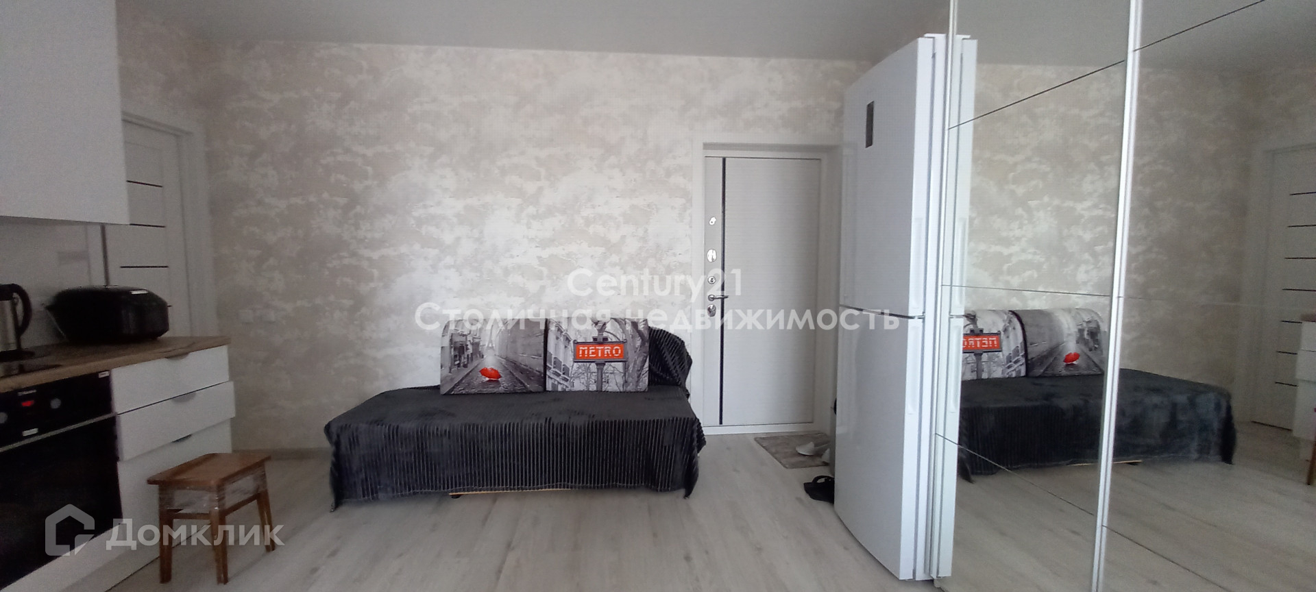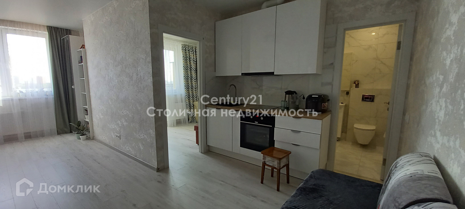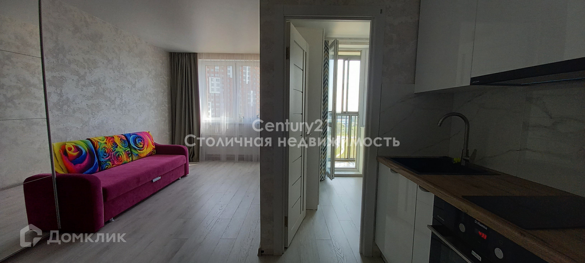 Квартира продается с встроенной кухней, техникой и мебелью.