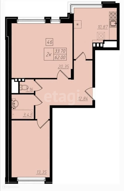 Общая площадь - 62 м кв.