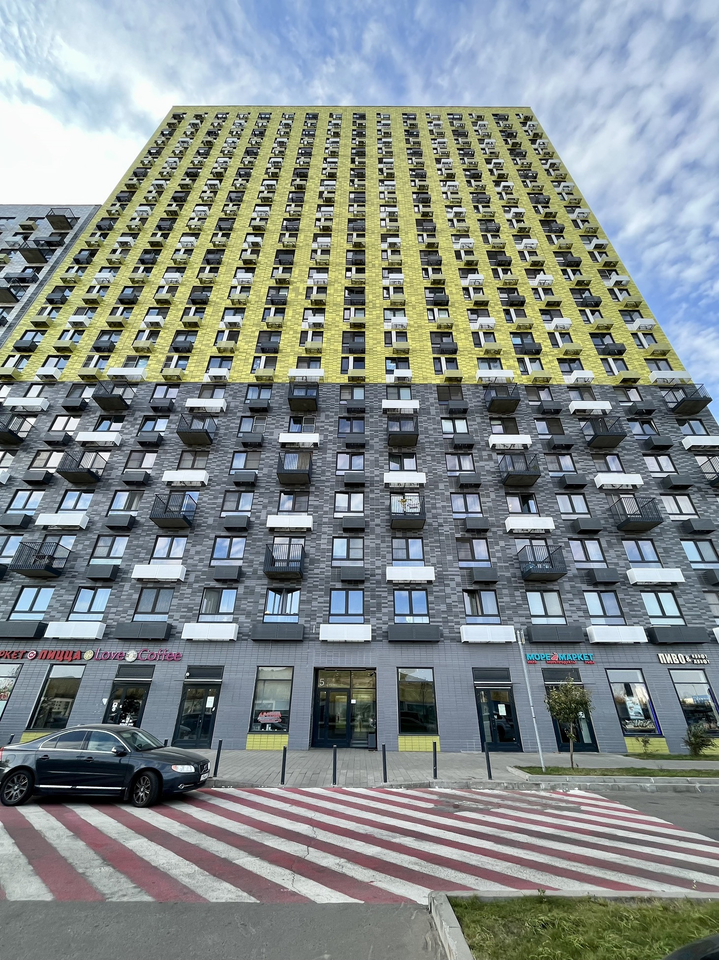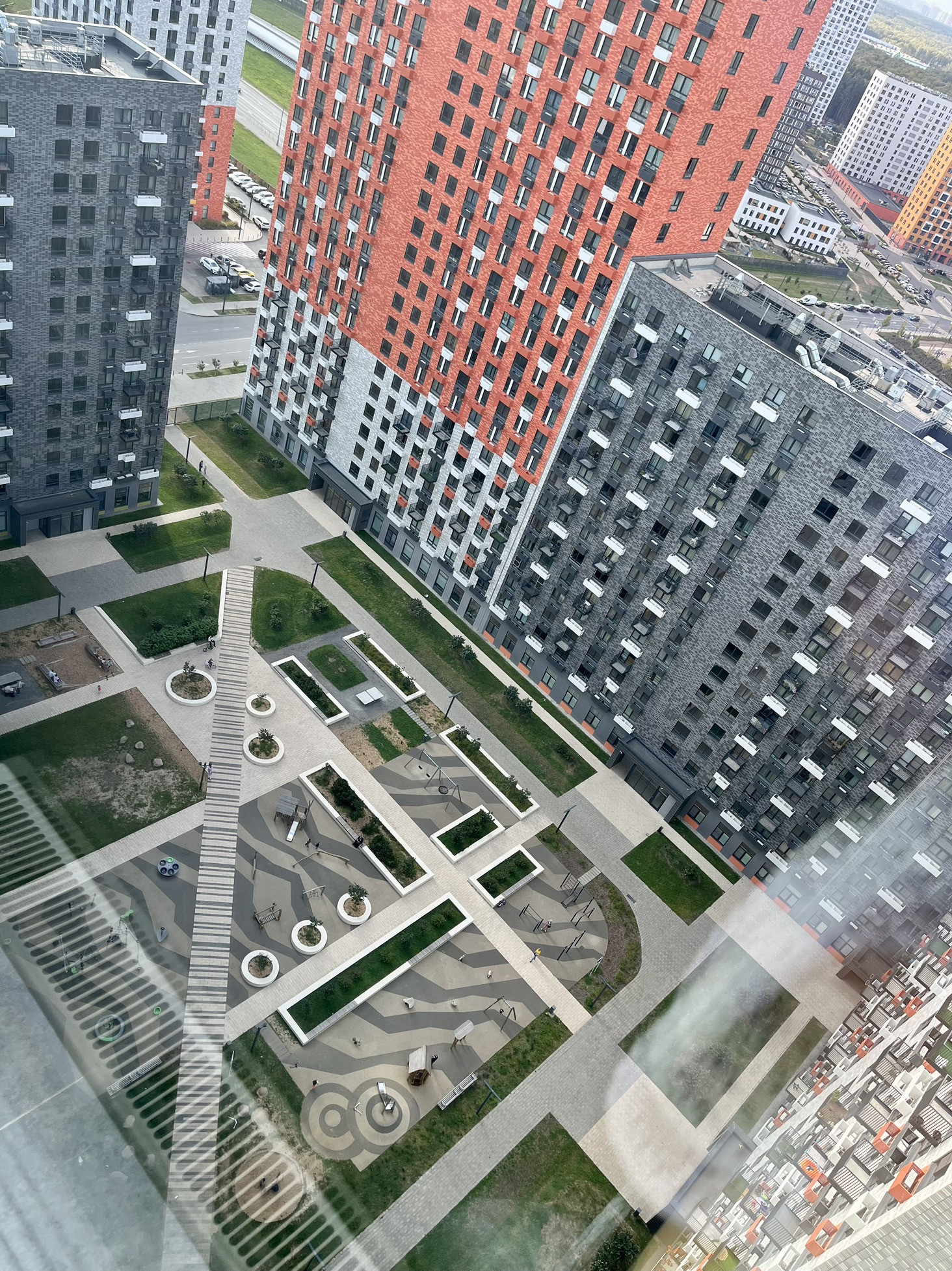 Дом имеет закрытый внутренний двор, спортивную и детскую площадки, наземную парковку и подземный паркинг.