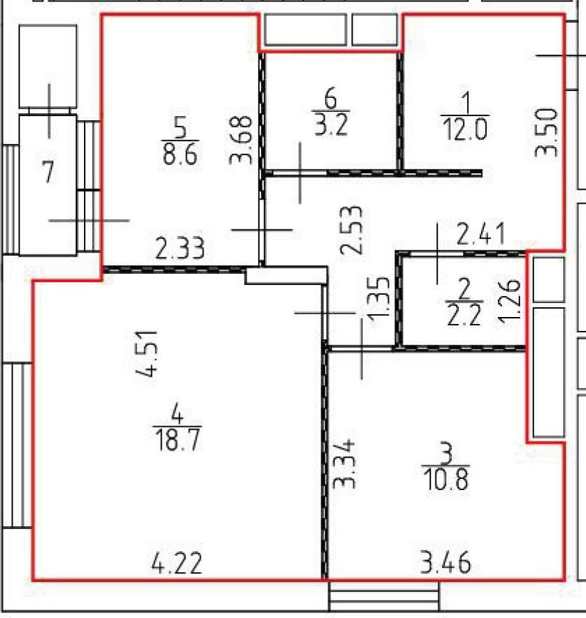 Общая площадь 55.5 м2