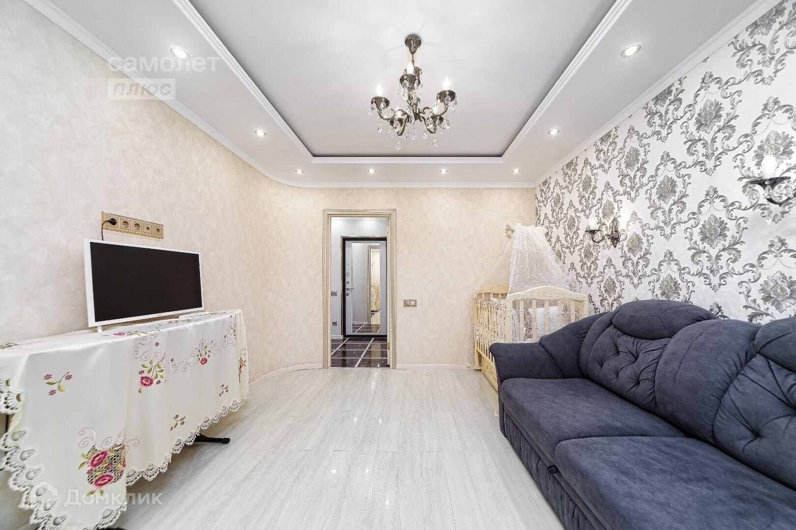 В квартире выполнен качественный ремонт с использованием современных технологий и из дорогостоящих материалов. Натяжные потолки.