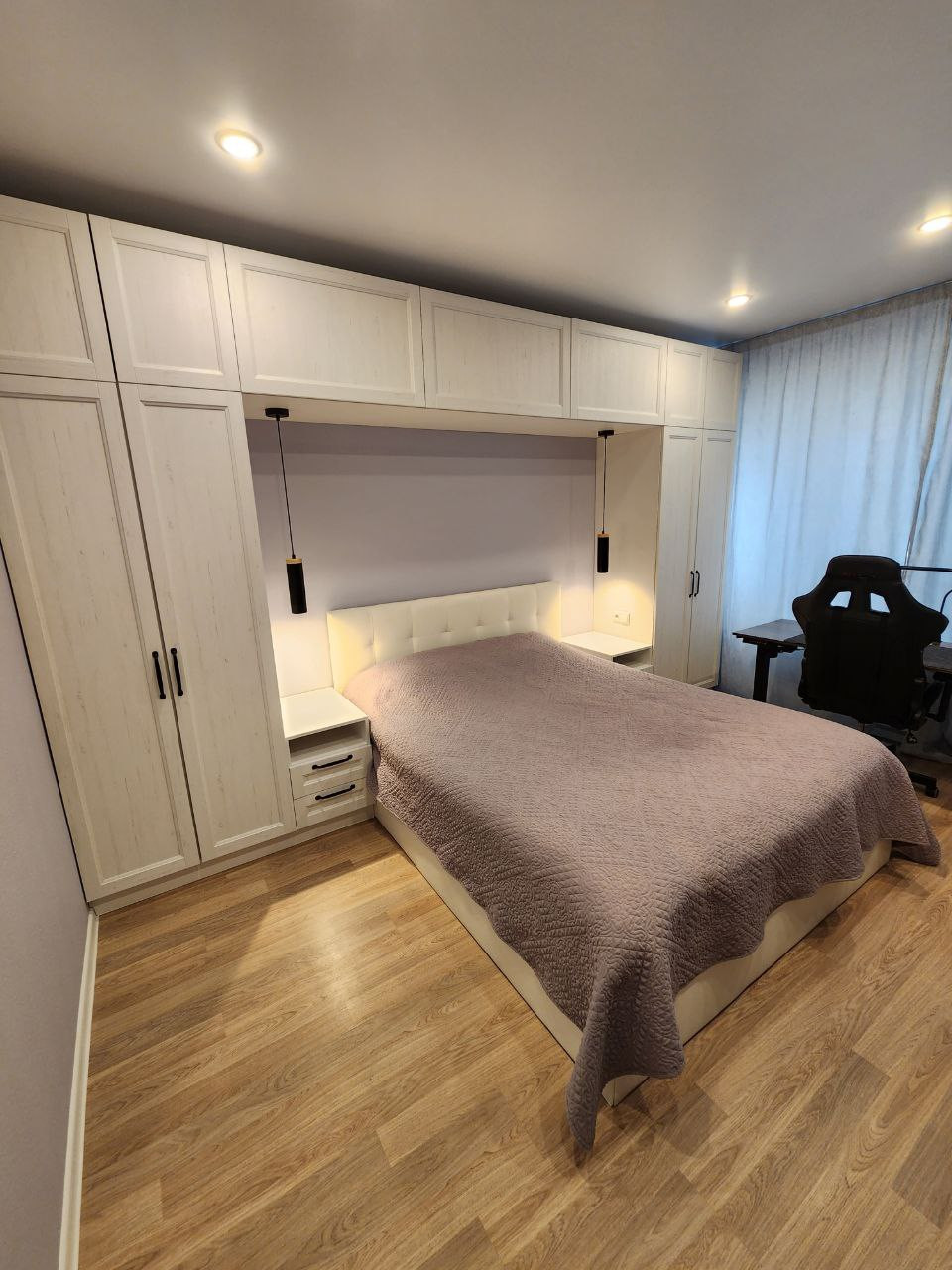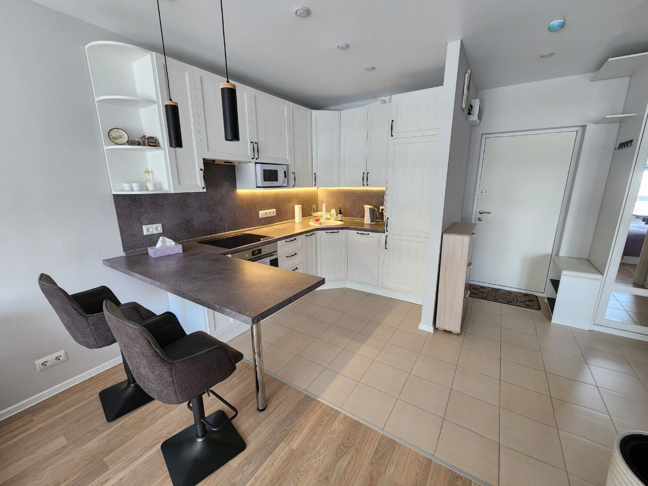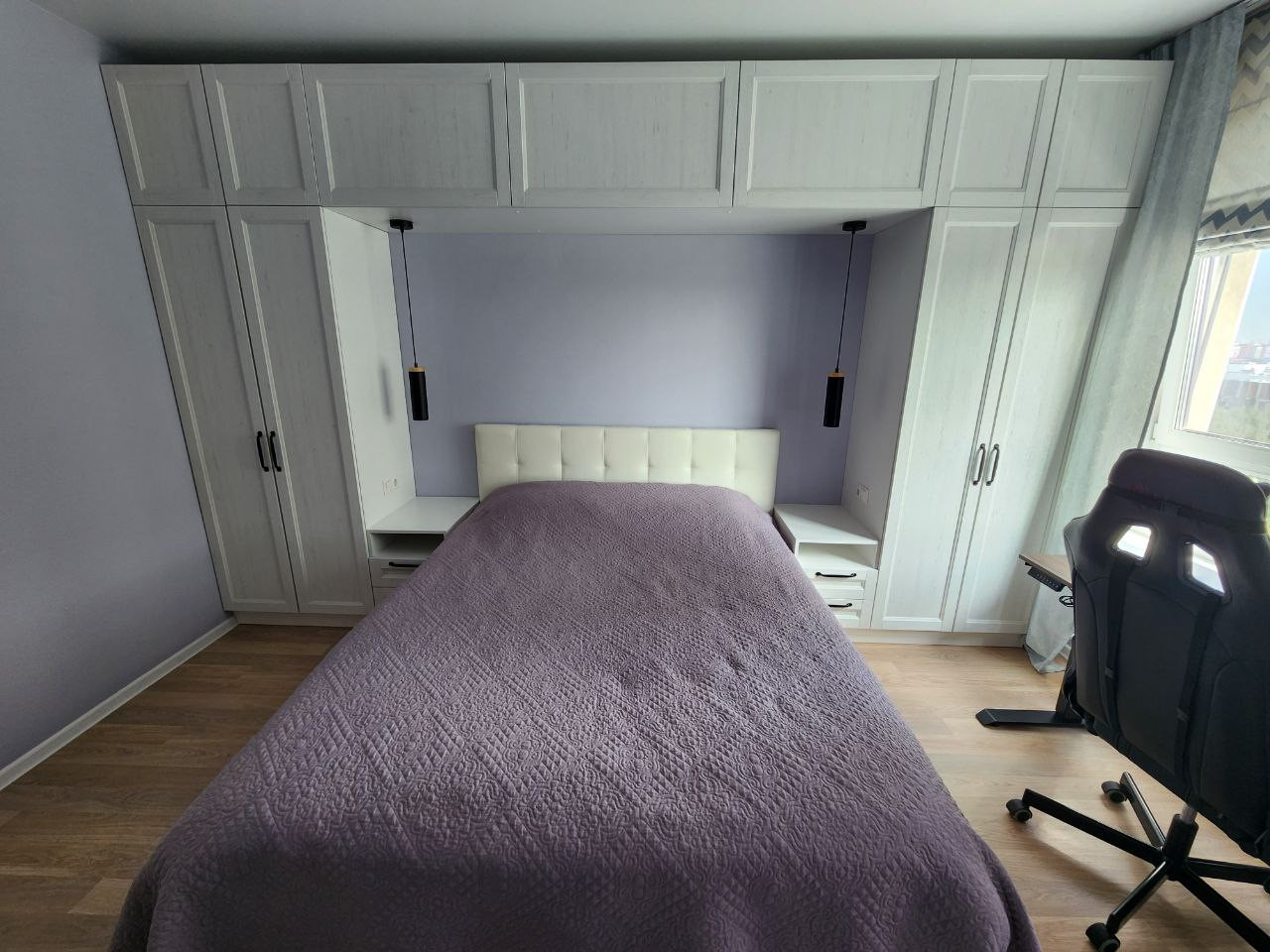 Ремонт делался для себя. Мебель изготавливалась под заказ в едином стиле. Установлен кондиционер, встроенный холодильник и посудомоечная машина. Также установлено хорошее освещение.