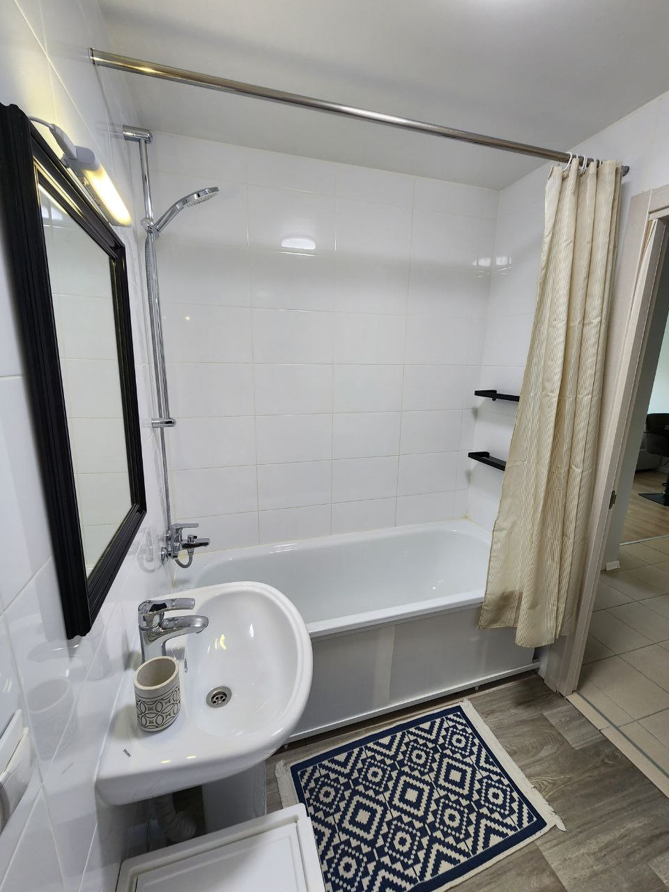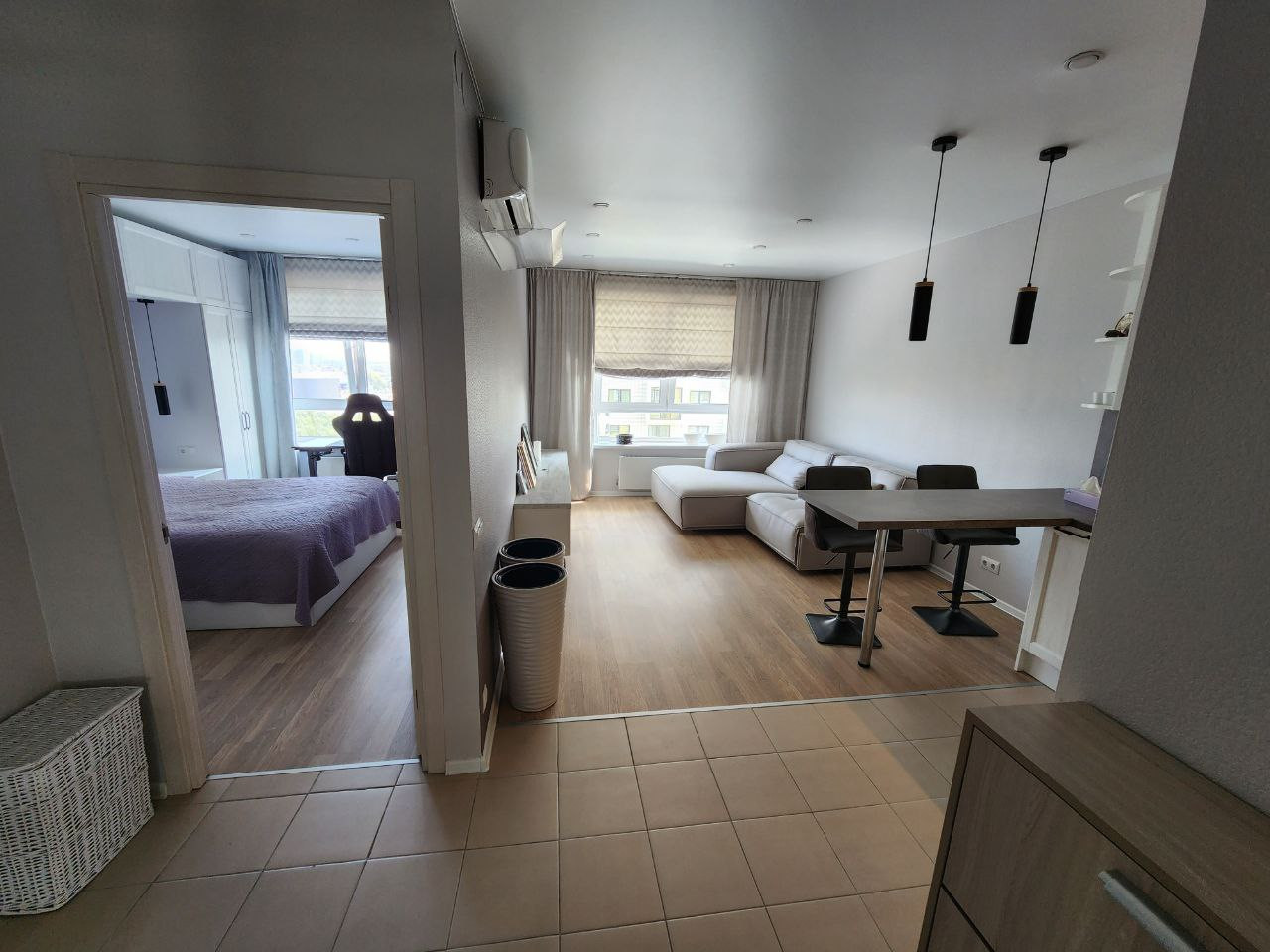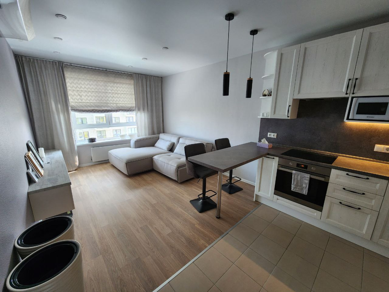 Большая кухня-гостиная 20 м.кв., изолированная спальня 14,2 м.кв., совмещенный санузел.