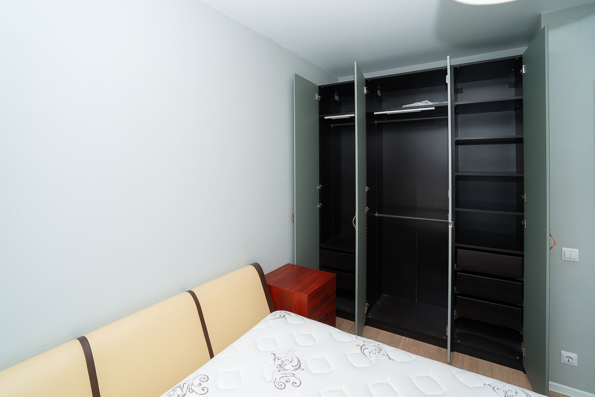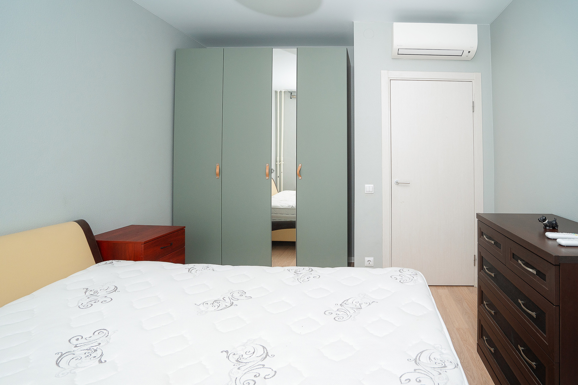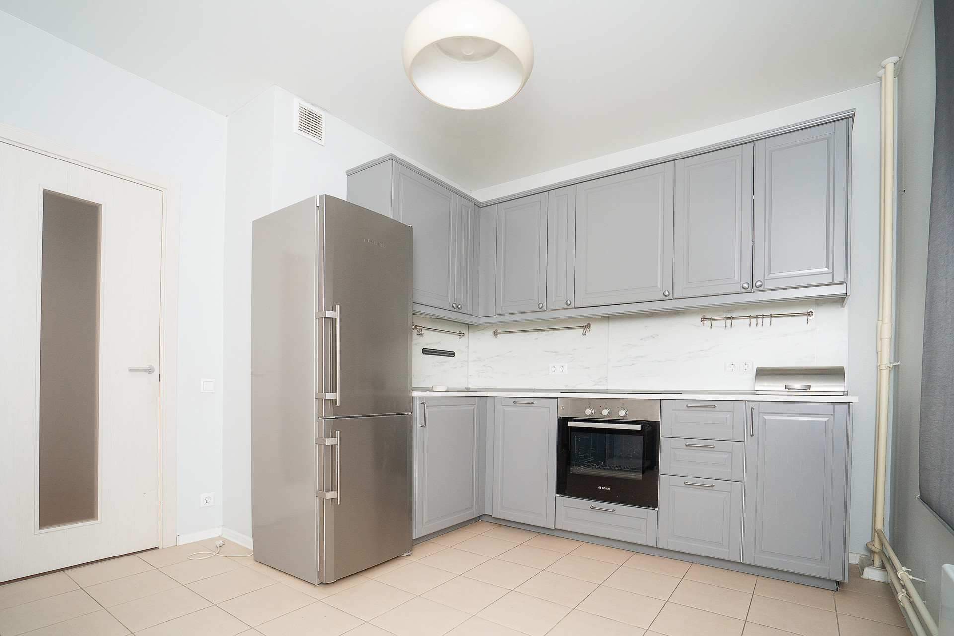 Квартира продается с мебелью и встроенной кухней с техникой, включая посудомоечную машину.