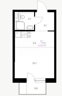 Жилая площадь 10.7 м2