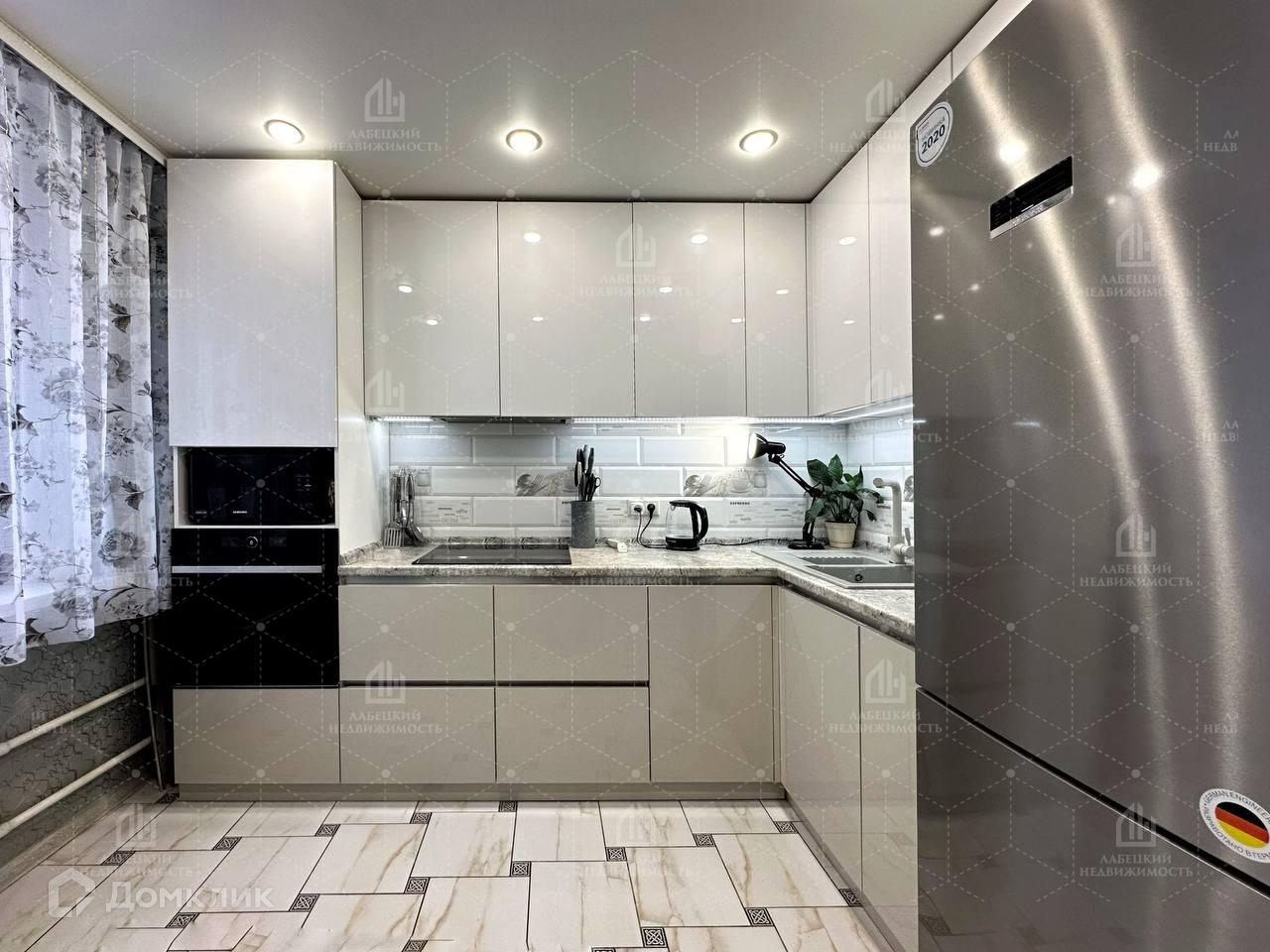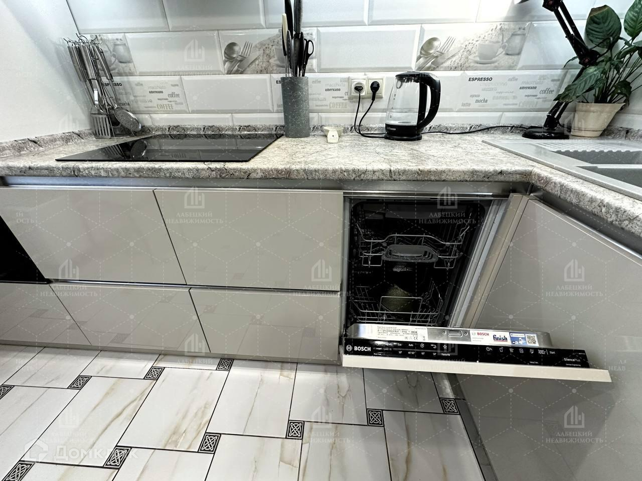 Есть все, что необходимо для комфортной жизни: посудомоечная машина, варочная поверхность, духовой шкаф, вытяжка, микроволновая печь. Все приличных фирм: Bosch, Samsung.