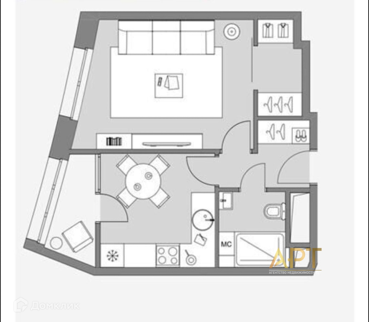 Общая площадь 33.3 м2