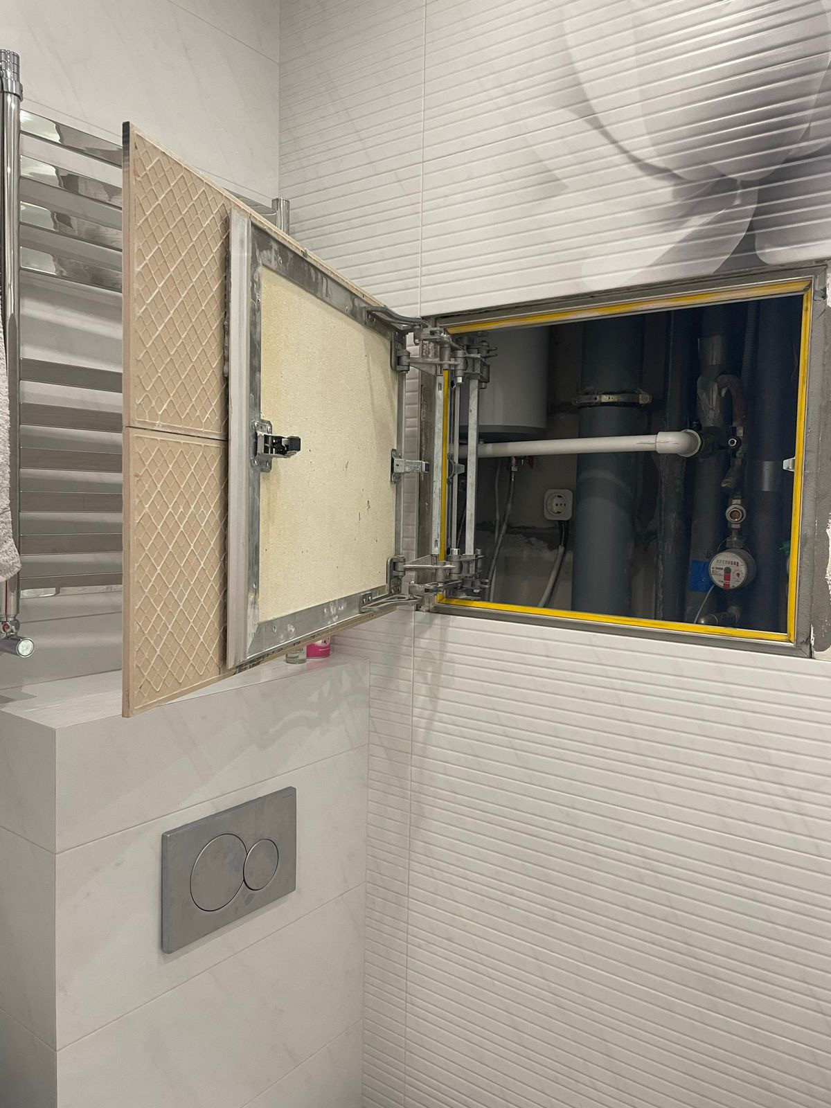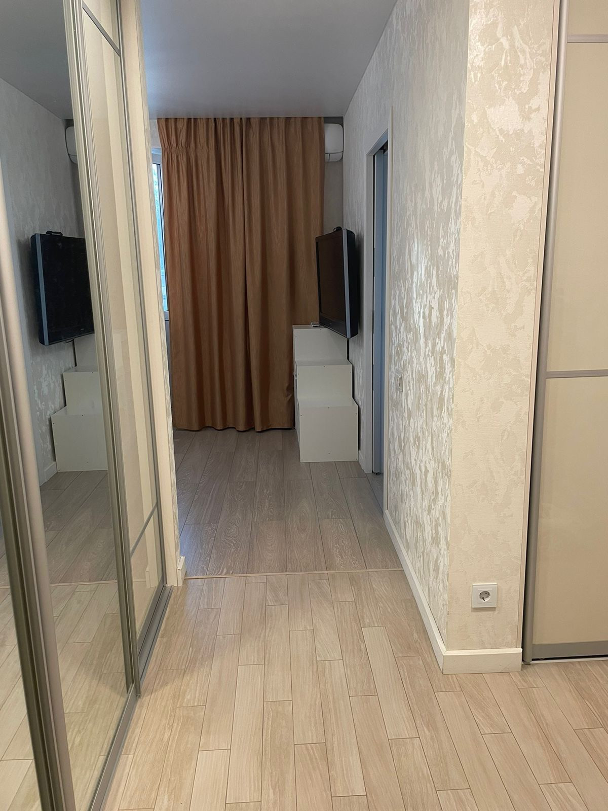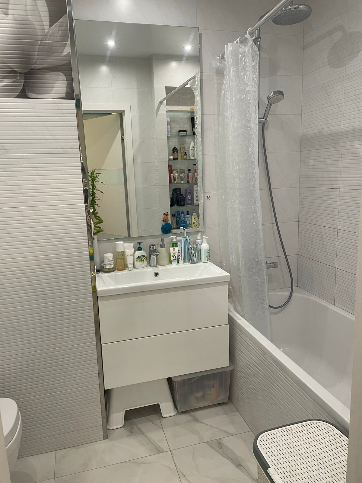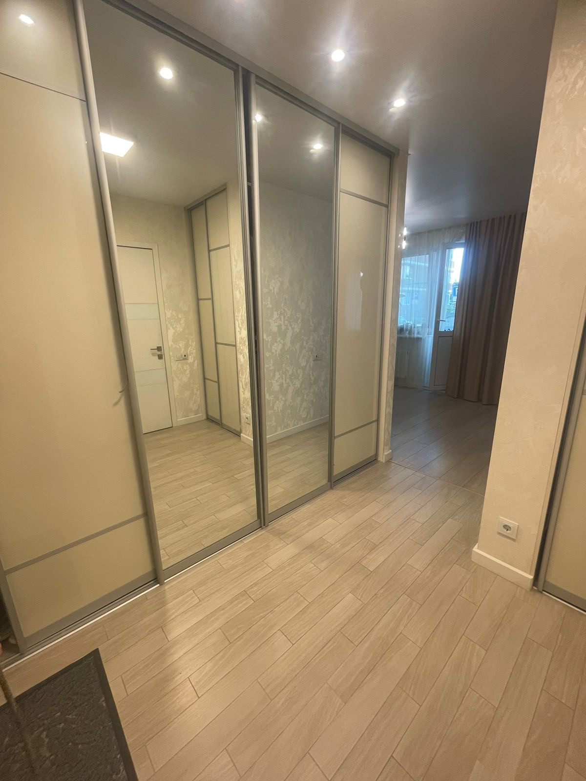 Совмещенный санузел, качественная плитка и сантехника (Grohe, Hansgrohe, Geberit) смесители Grohe, бойлер 30л на случай отключения горячей воды. Прихожая оборудована 2-мя вместительными встроенными шкафами.