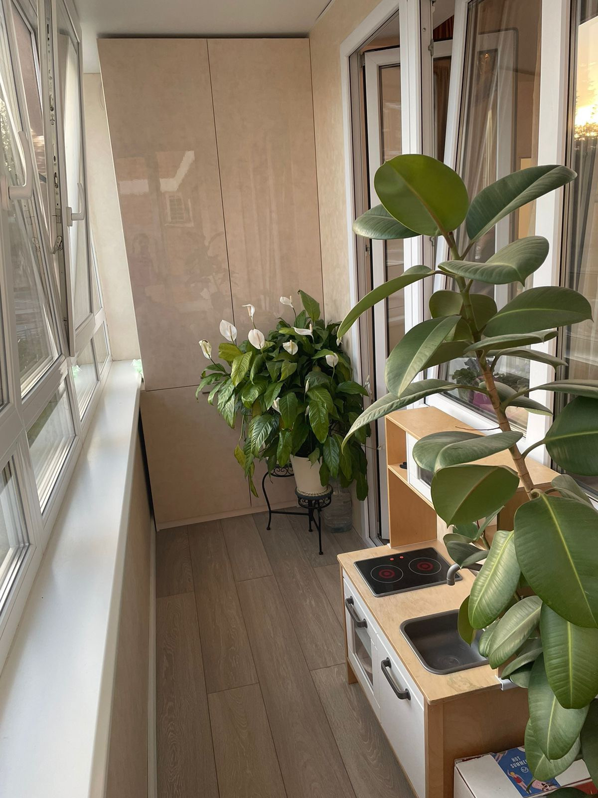 В кухне, коридоре и санузле тёплые полы. Окна не от застройщика, стоят 5-ти камерные стеклопакеты Rehau. Утепленная лоджия с оборудованным местом для отдыха и шкафом для хранения вещей.