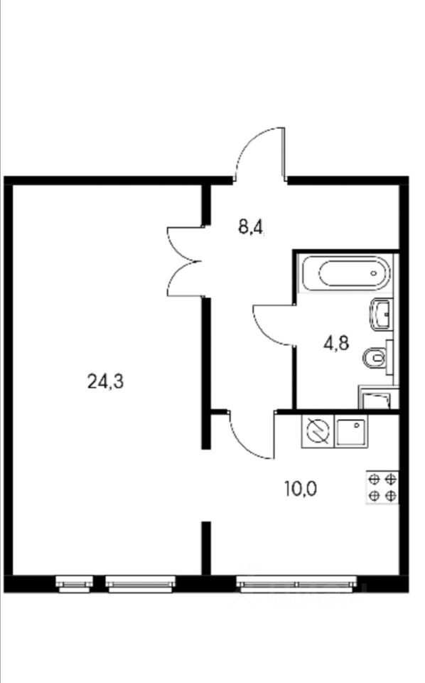 Жилая площадь 24.3 м2