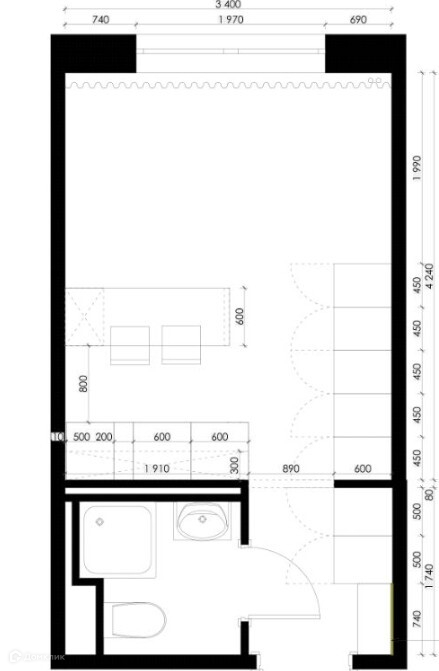 Прекрасная студия с отделкой под ключи и комфортного проживания!