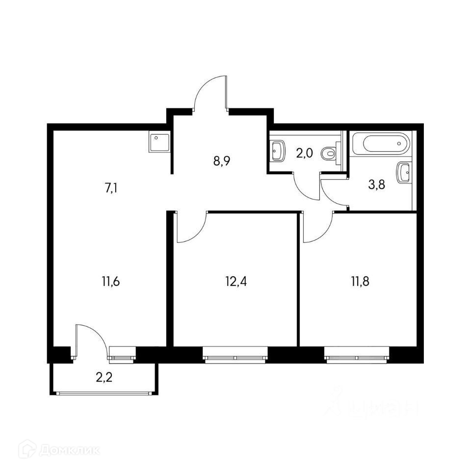 Общая площадь 58.2 м2