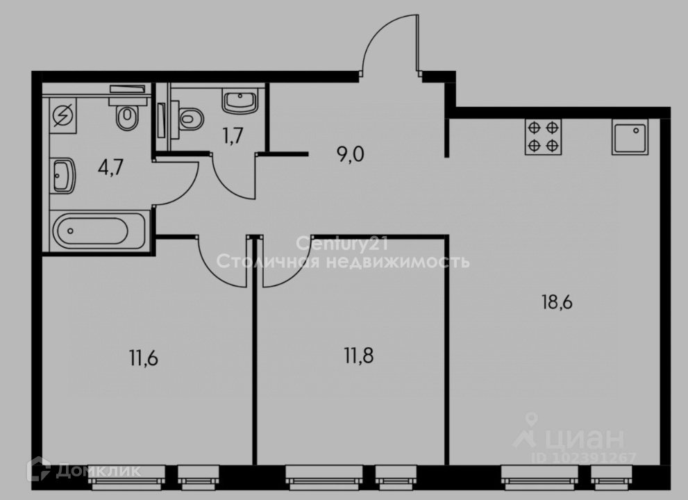 Общая площадь: 56.7 м²
