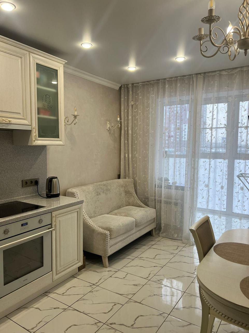 Светлая двухкомнатная квартира с качественным евроремонтом, высокими потолками 2,8м и выгодной планировкой. Просторная и уютная кухня, со встроенной техникой позволит устраивать семейные посиделки и встречать гостей.  Из кухни есть выход на обустроенный балкон. Светлые комнаты оформлены в классическом европейском стиле, с одной из комнат есть выход на лоджию. Мебель и техника остается новому собственнику, можно заезжать и жить.