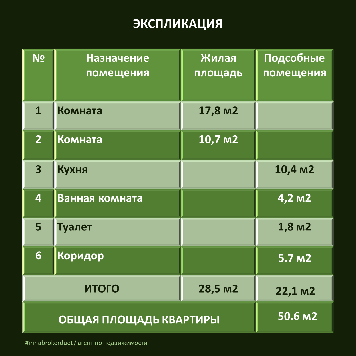 Общая площадь 50.6 м2