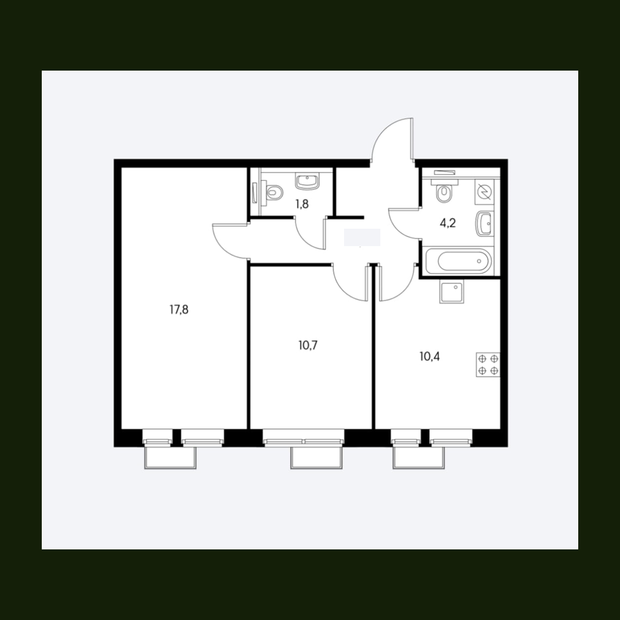 Площадь кухни 10.4 м2