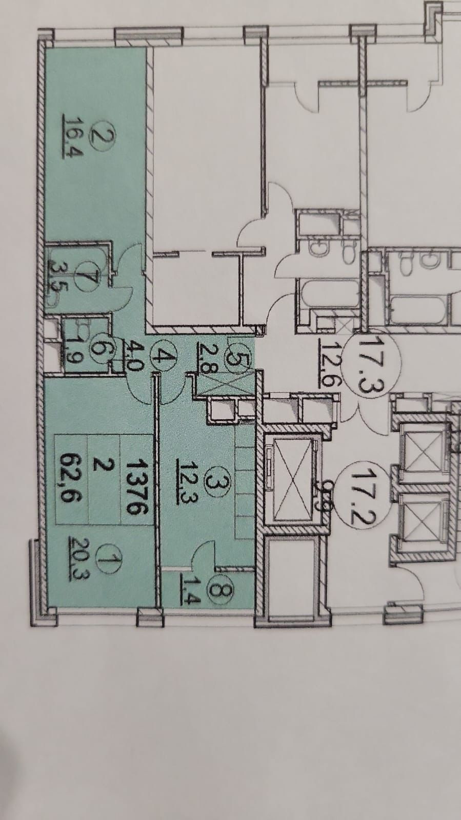 Общая площадь 62.6 м2