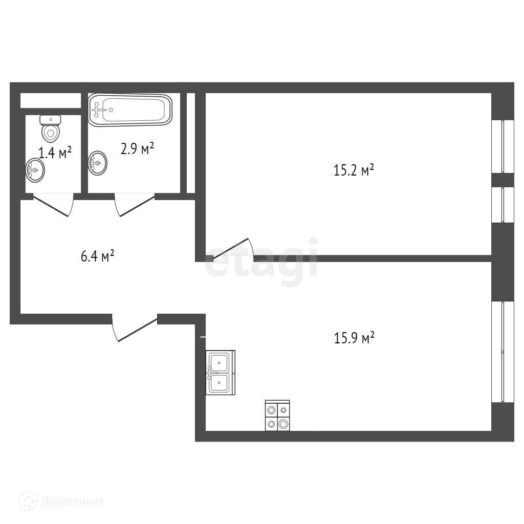 Площадь кухни 15.9 м2