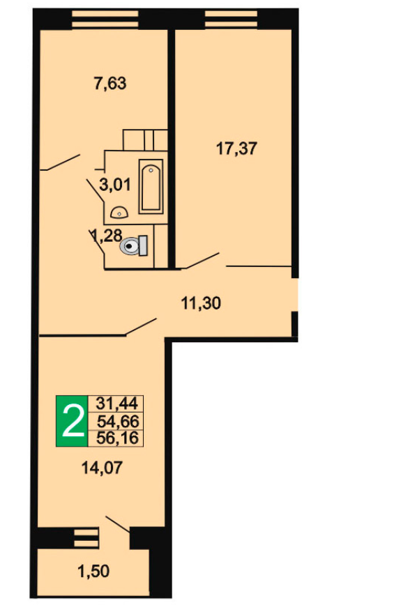 Жилая площадь 31.44 м2
