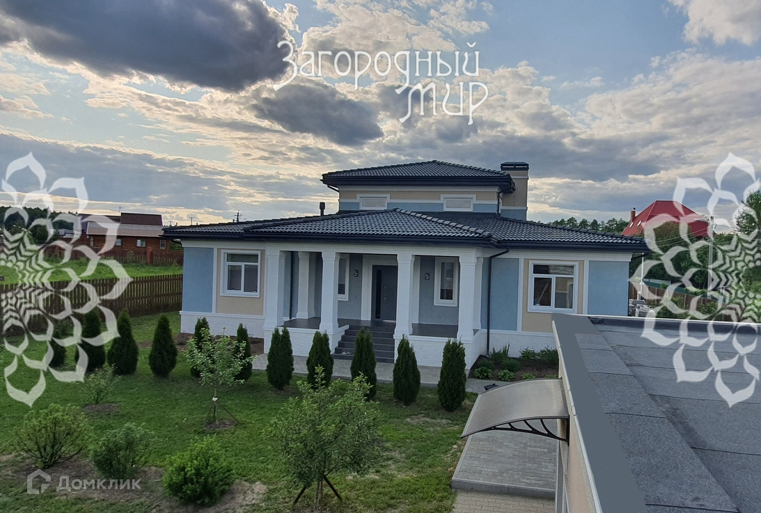 В доме уютная гостиная площадью 60 кв.м с камином (второй свет, высота потолка 6 м), оборудованная кухня-столовая, 2 с/у, 3 спальни, кабинет, просторный холл, сауна (не закончена), бойлерная, 2 гардеробные комнаты. Теплые полы во всем доме (кроме спален). С двух сторон дома размещены две террасы (одна - с зоной барбекю). Чистый и светлый дом полностью меблирован, оборудован всей необходимой техникой.